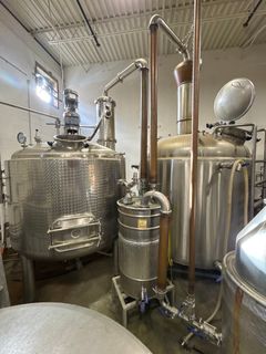 • Copper Still + Tanks — large-cap system w/ sight glasses