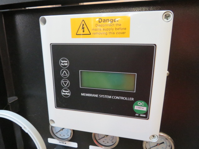 Made to provide you with unparalleled water purification right out of the box. This advanced system is ready for immediate use, ensuring you can start enjoying clean, purified water without delay. It’s compact design makes it ideal for both residential and commercial settings. With all instrumentation easily accessible, you’ll find monitoring and adjusting the system a breeze. Features: AX– 8000 Computer Controller, LCD Backlit Display, Pre-Treatment Lockout, Feed Flush, TDS & Temperature Monitoring, Low and High Pressure, Monitoring and Alarm, Manual Flush, Tank Level Input, Black Powder Coated Aluminum Frame, Pentair Big Grey Filter Housings, AXEON XE1– Series 4 x 40 Membrane Elements, AXEON SDF– Series 4.5 x 20 Diameter 5-Micron Sediment Pre-Filter, Grundfos Multi-Stage Stainless Steel Booster Pump, Parker/Seatech Push/Pull Quick, & Connect Fittings. Single Pass, 58% Standard Recovery, 1 FNPT, membrane size: 4040. Multi-stage pump, Hp Motor: 2, RPM at 60 Hz: 3480. Dimensions: 25x16x55. Approx 180 lbs. Paid: $19,190.00.