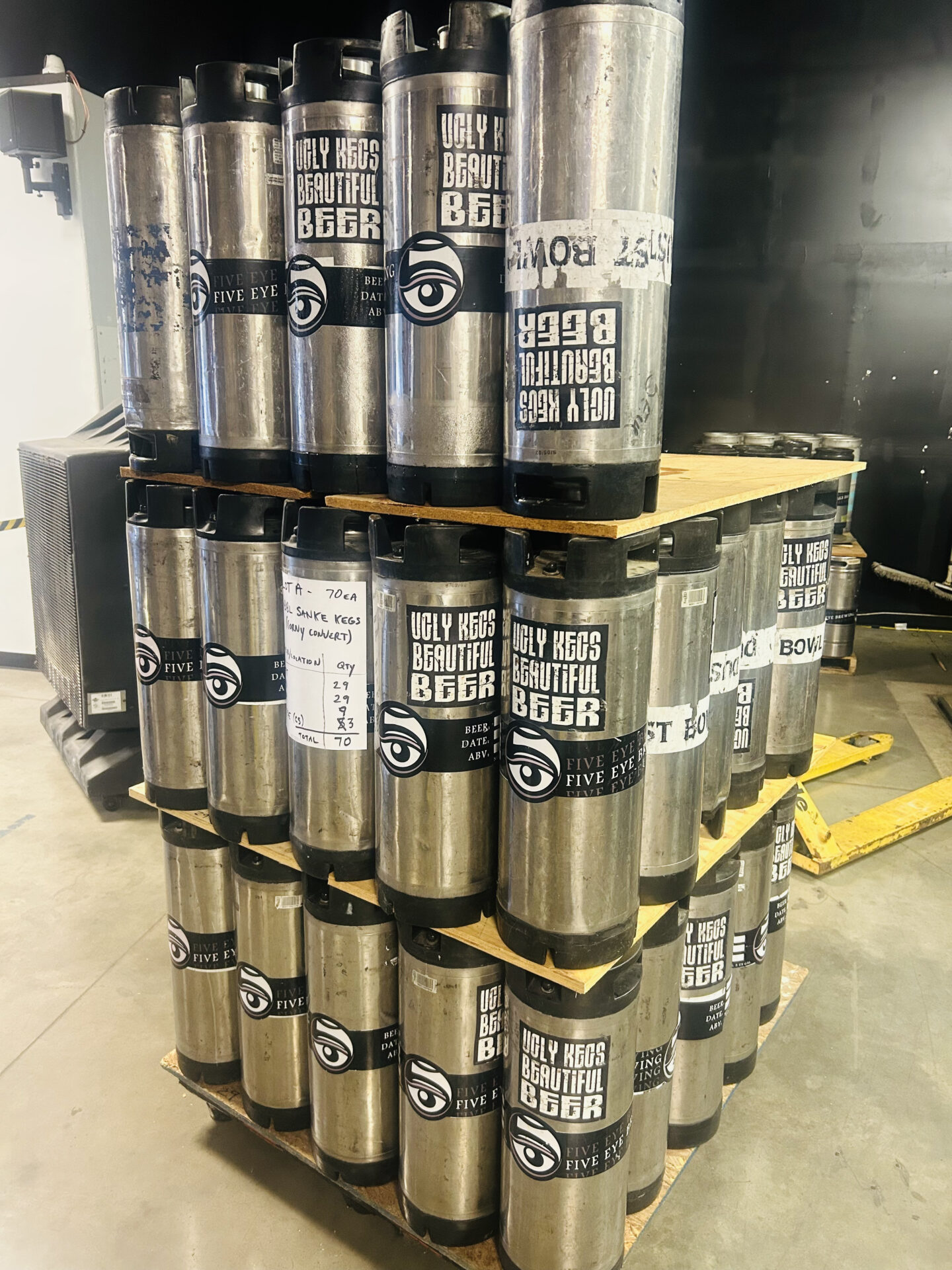 We have a lot of 70 converted sixtel corny-style kegs available. These were purchased about 7 years ago and have been used in a brewery setting. They are in fair condition — expect cosmetic wear but all are functional.