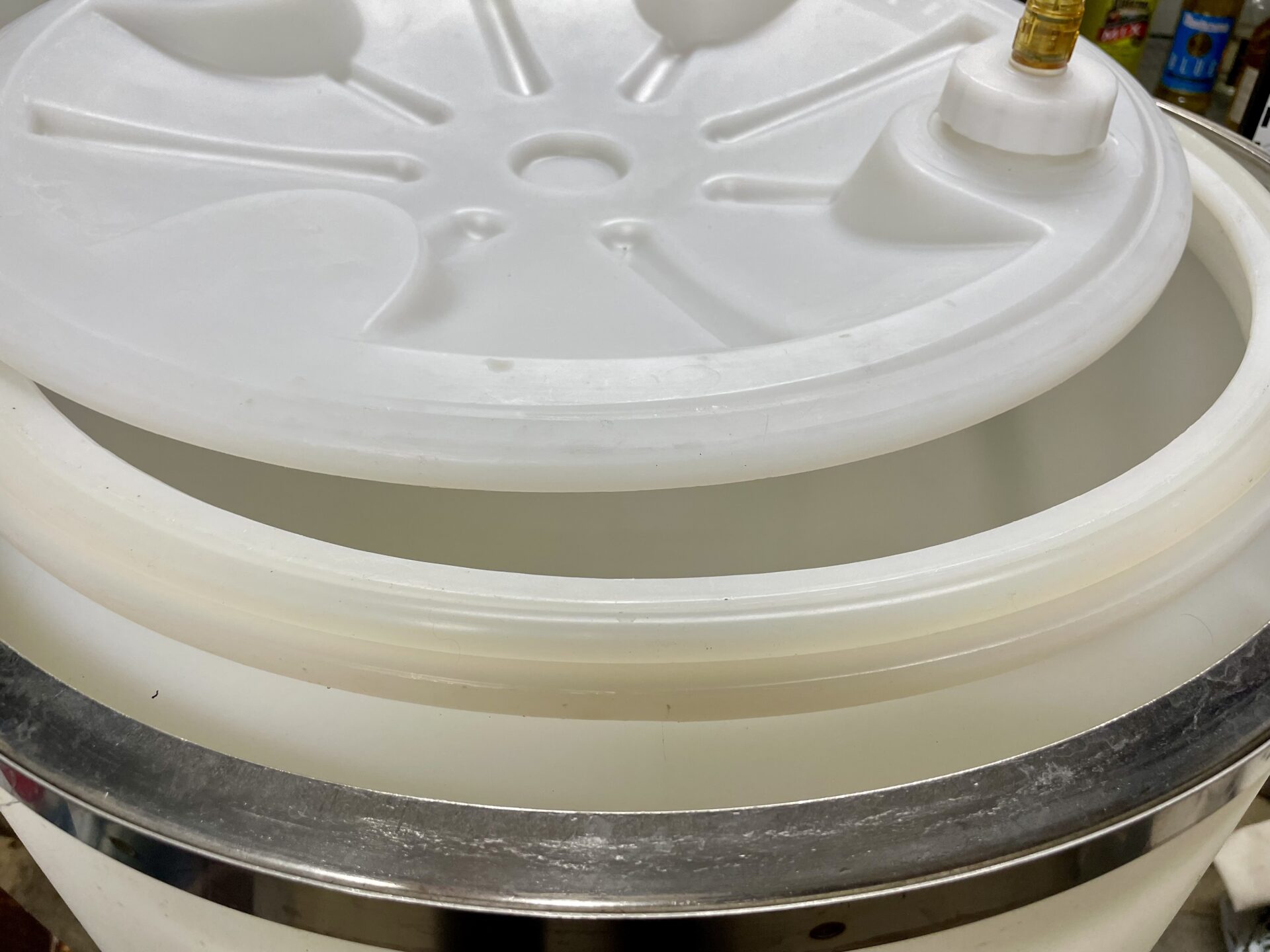 80 gallon dexter tank. Price includes valve flange kit with ball valve and fermentation lock. I have two available. $400 per tank.