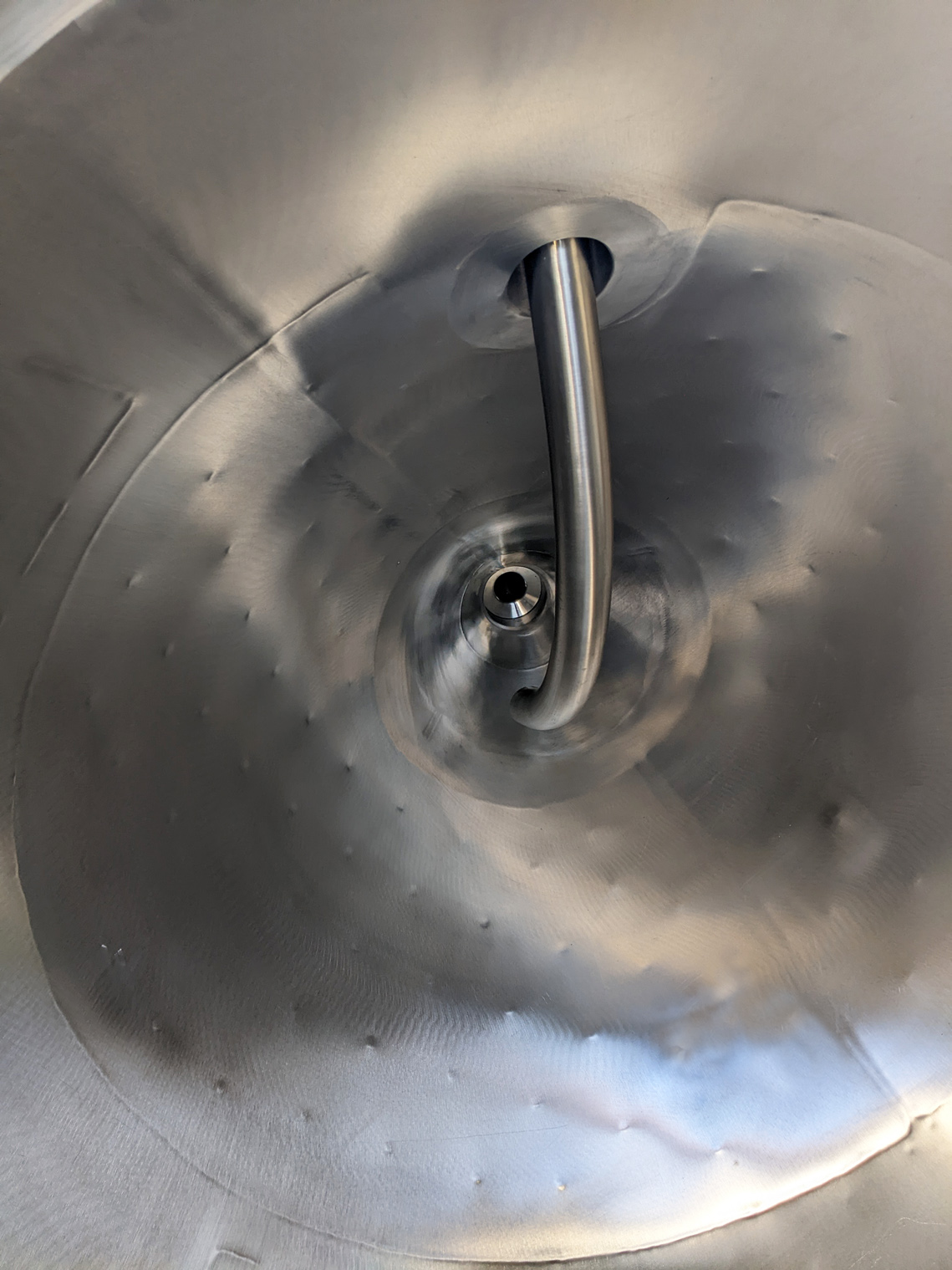 Dimple plate jacketed body & cone for glycol cooling; provided with non-code stamped heat transfer jacket for use up to 14.9 PSI – tested at 70 PSI,