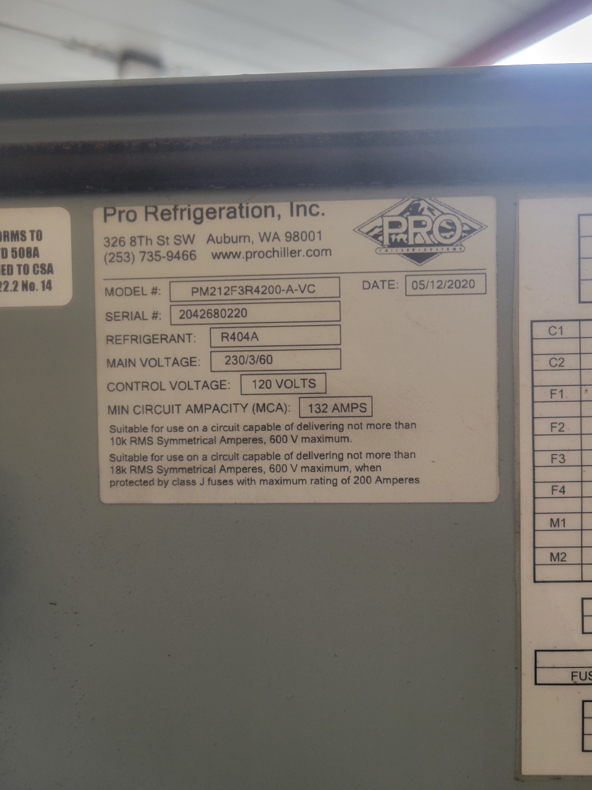 Prochill MA series chiller model number PM212f3r4200_a_vc