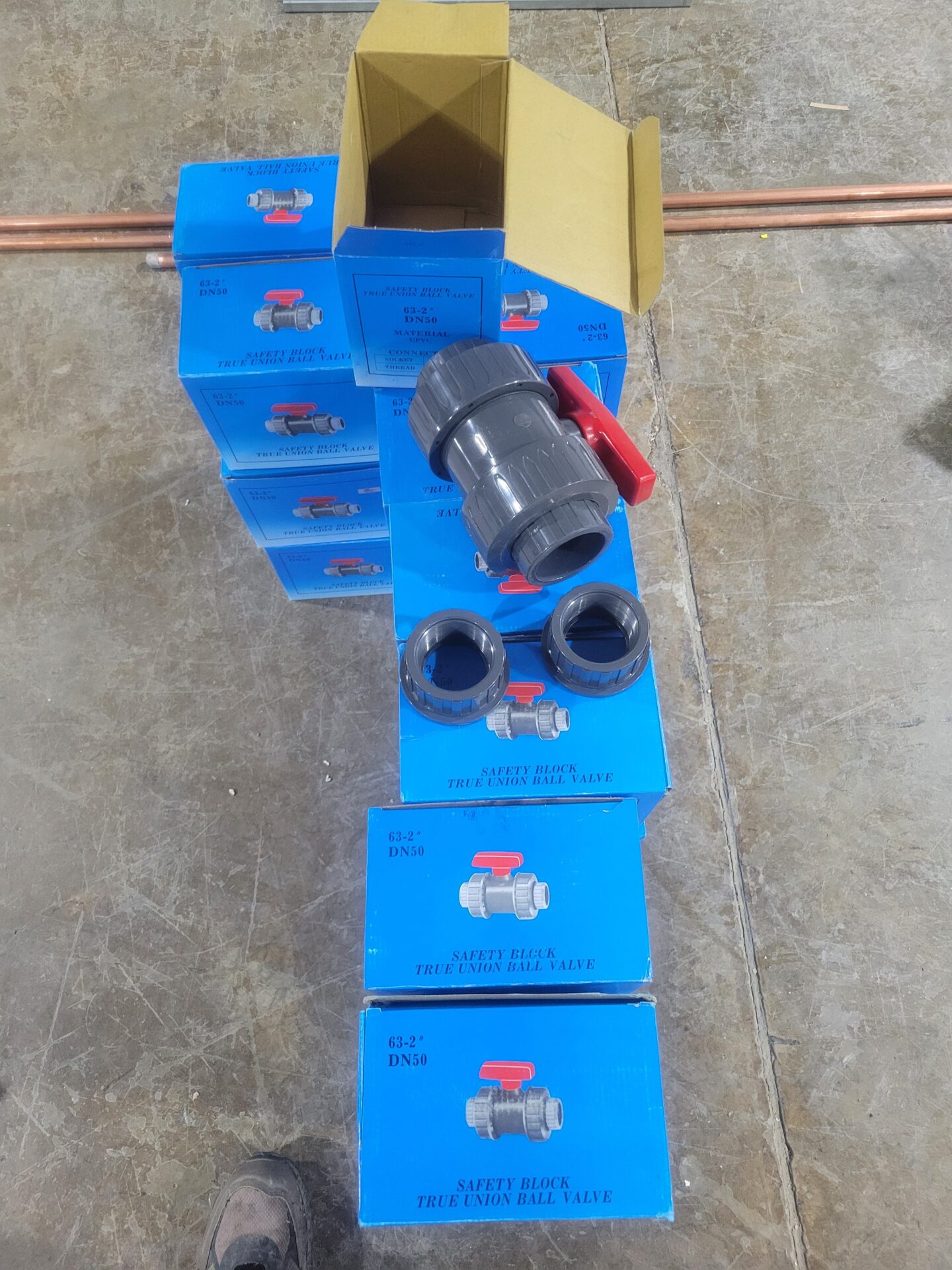 40 2in sched 80 union style ball valves. With socket and npt