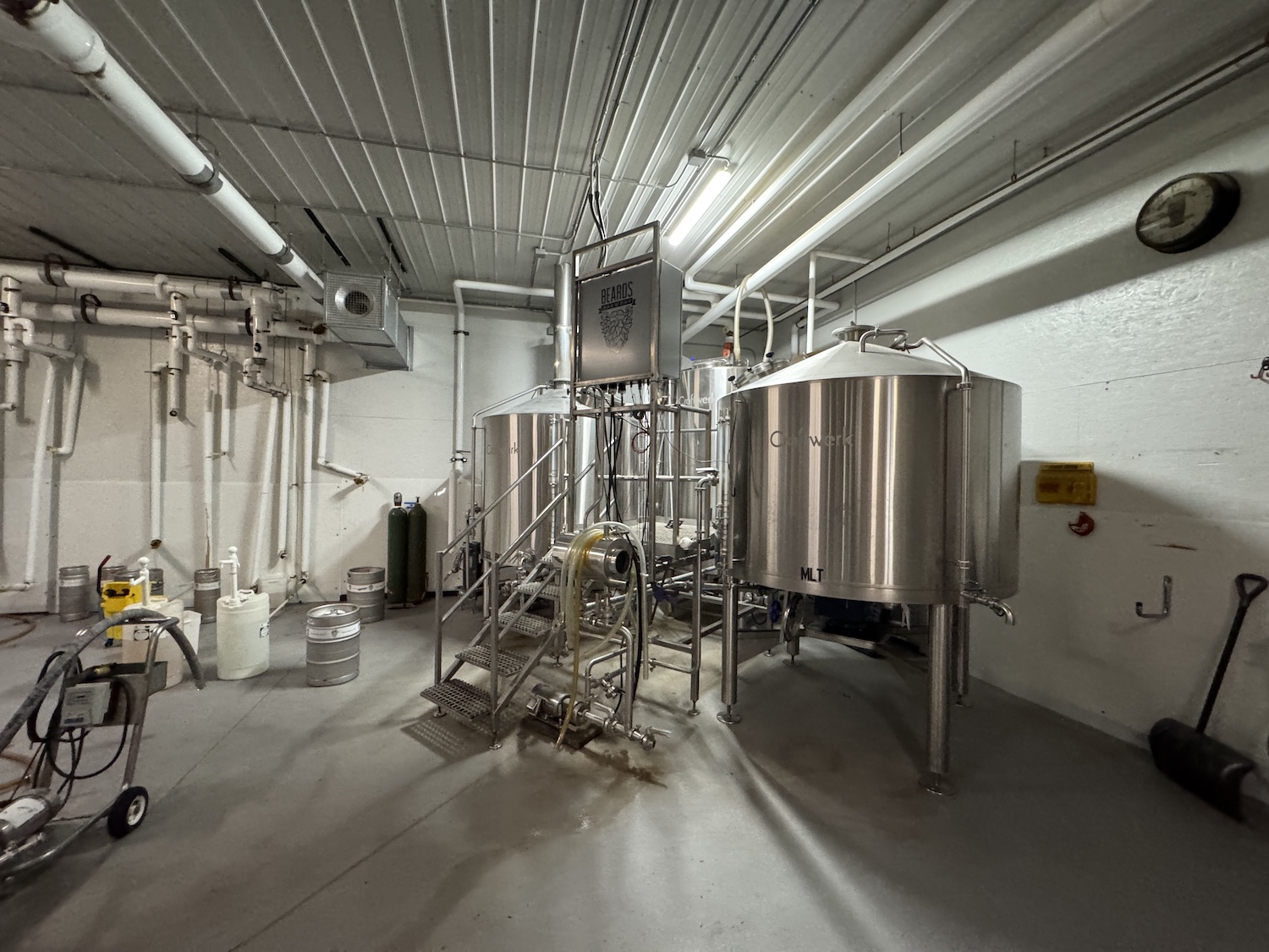 Brewhouse pumps, platforms, and piping