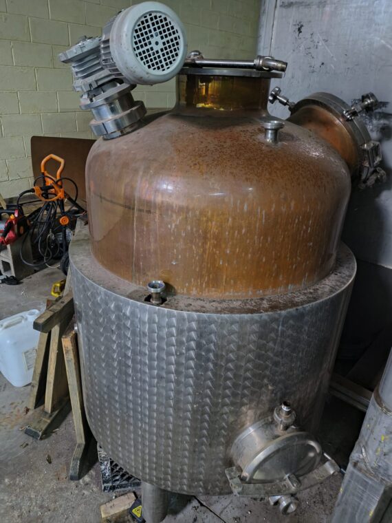DYE (china) Steam Jacketed Copper Pot . 500 L capacity. Pot ONLY, fittings Are DIN . Why are we selling? an asset we don’t need. kept it for a second location. But the Steam jacket fitting was never welded, we repaired that. but after hooking it up discovered there a another leak on the opposite side behind the stainless cladding. We went no further on fixing.