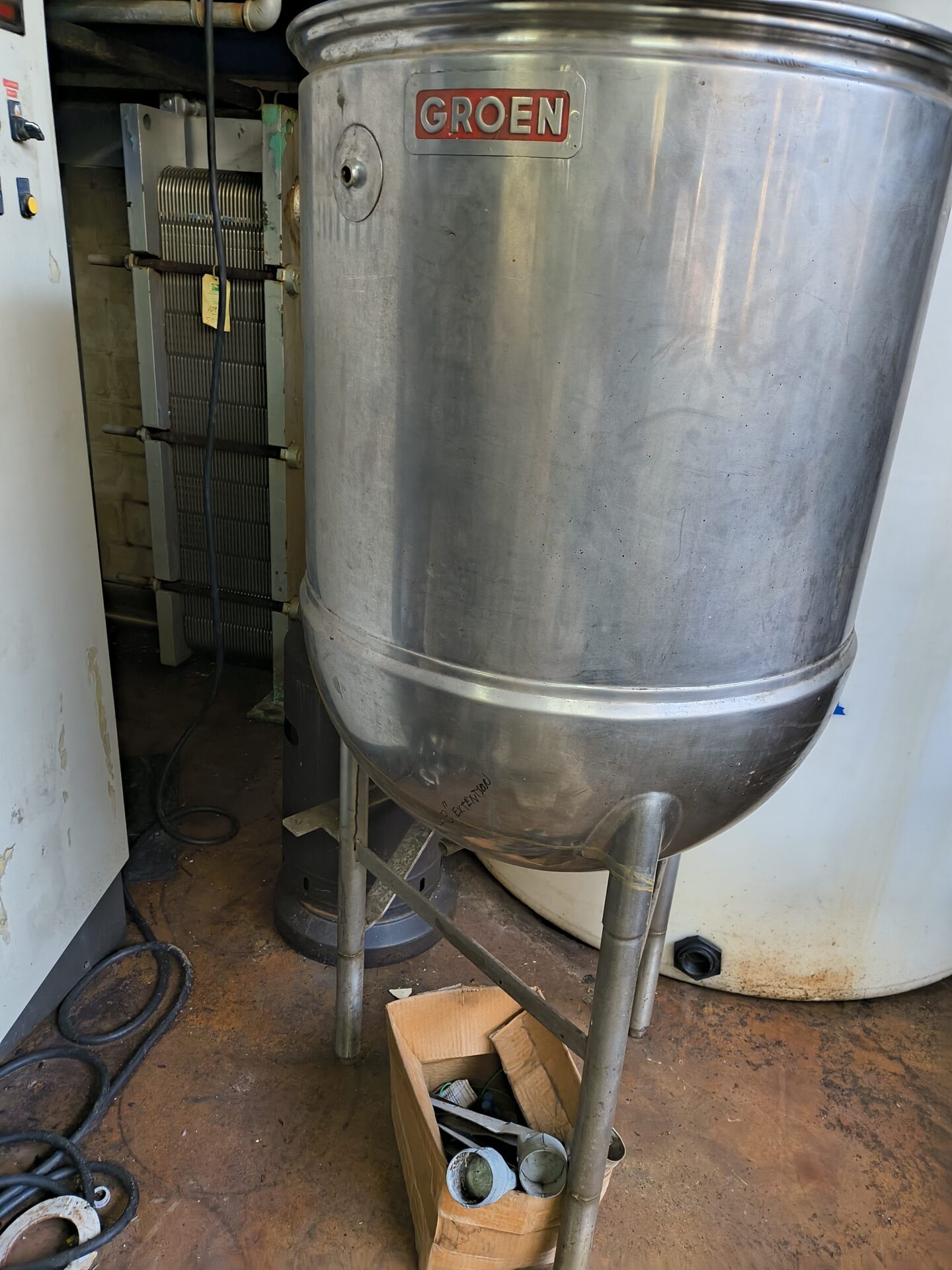 Stainless steel steam jacketed groen kettle . Originally used as a coffee maker.
