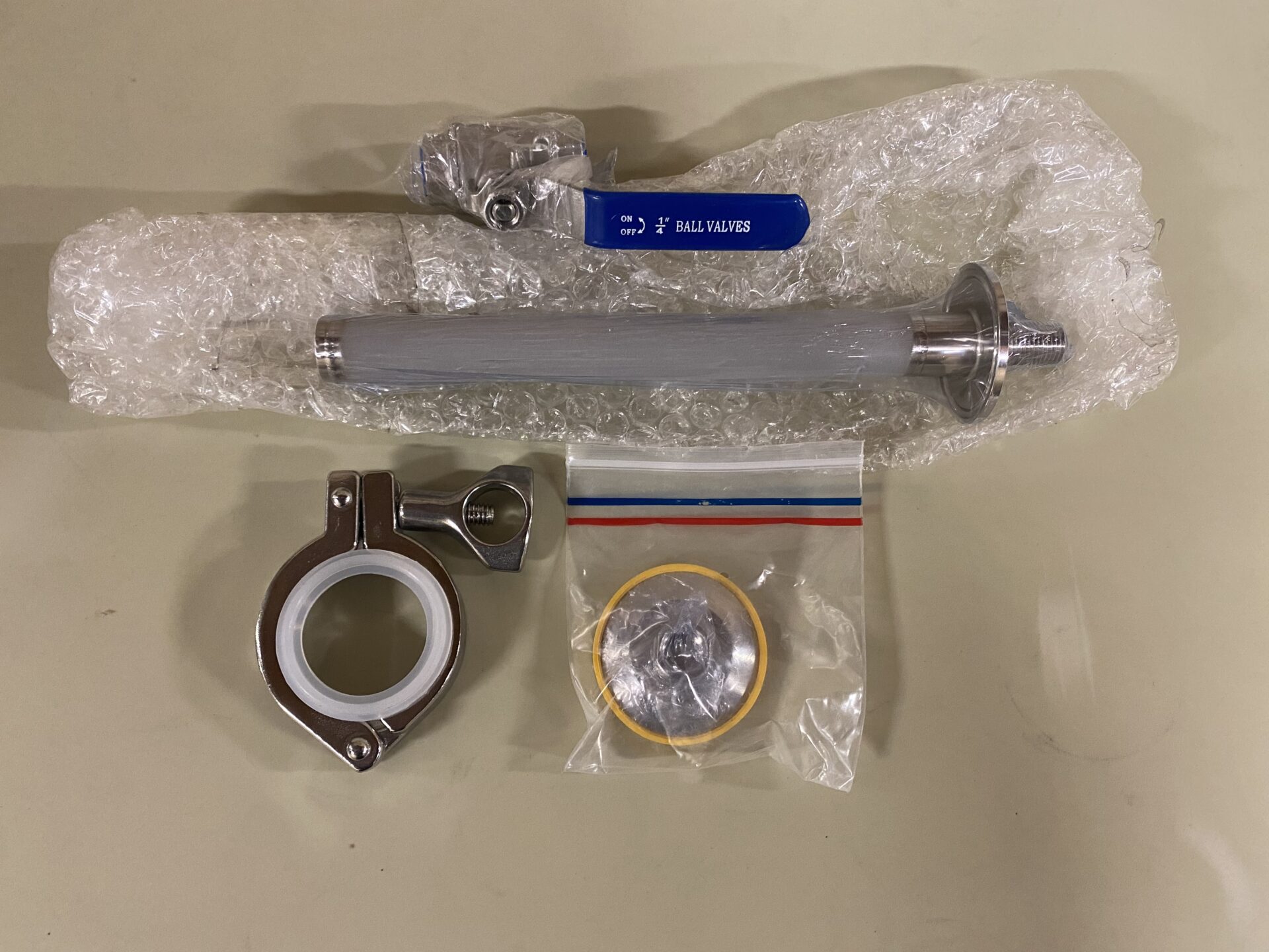 – Carbstone assembly with ball valve, NPT adapter, and clamp/gasket