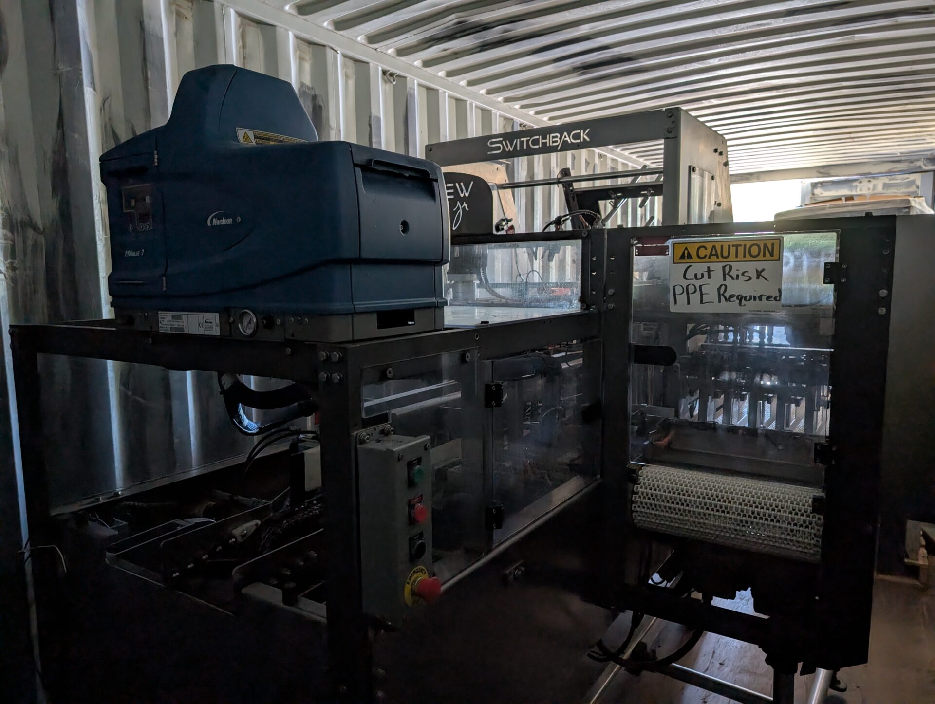 Please request nameplate photos, utilities (voltage/phase/Hz), air requirements, and included conveyors/sections