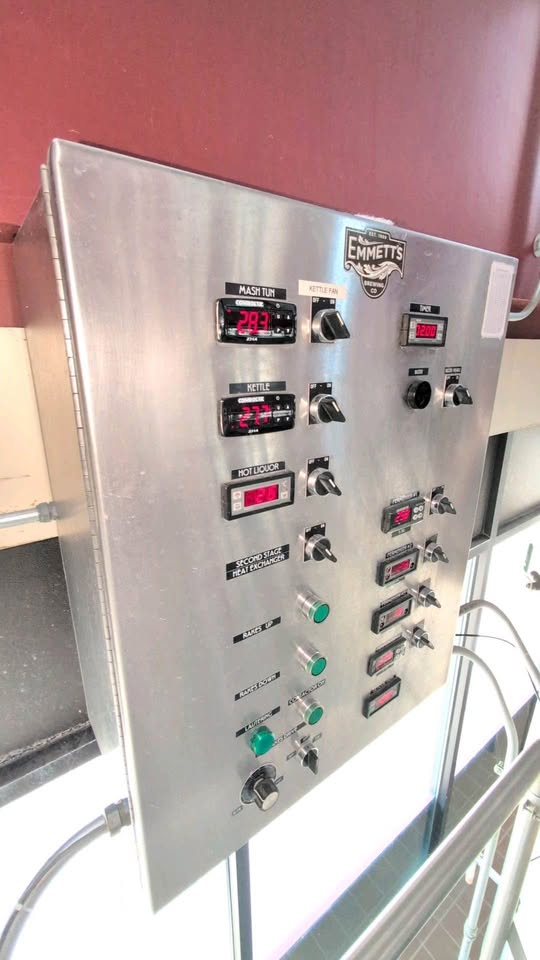 Brewhouse control panel integrated with temperature controllers for fermenters