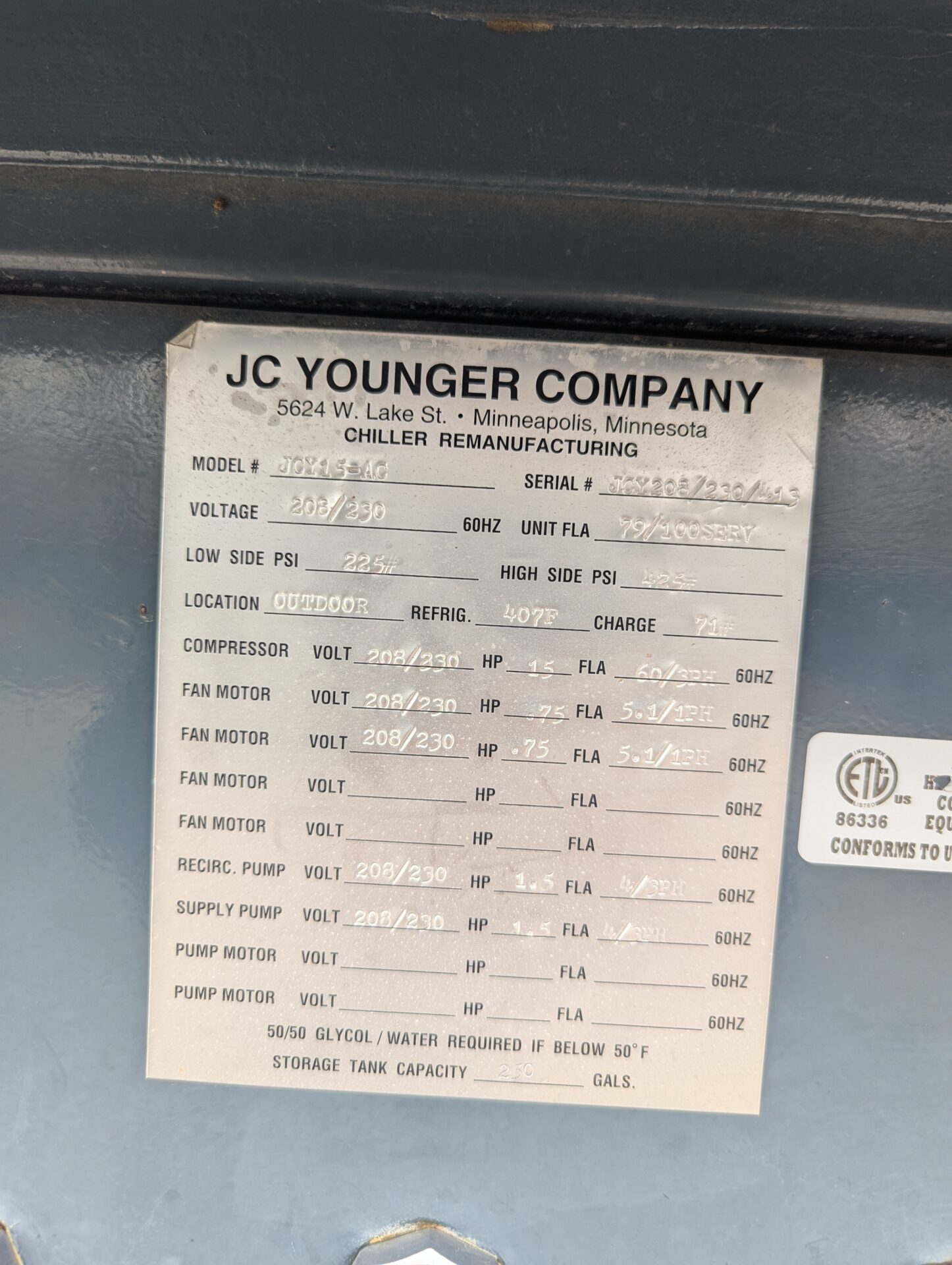 15hp MLT chiller, round frame style
