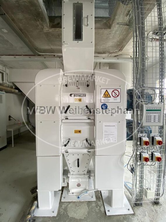 Used Bühler 4-roller malt milling plant (2016) – high-capacity at 4 t/h, Siemens S7-300 control, 3 small & 4 large silo discharges, malt transport, blower, weighing, conditioning, and full control cabinet—precision milling, built to perform.