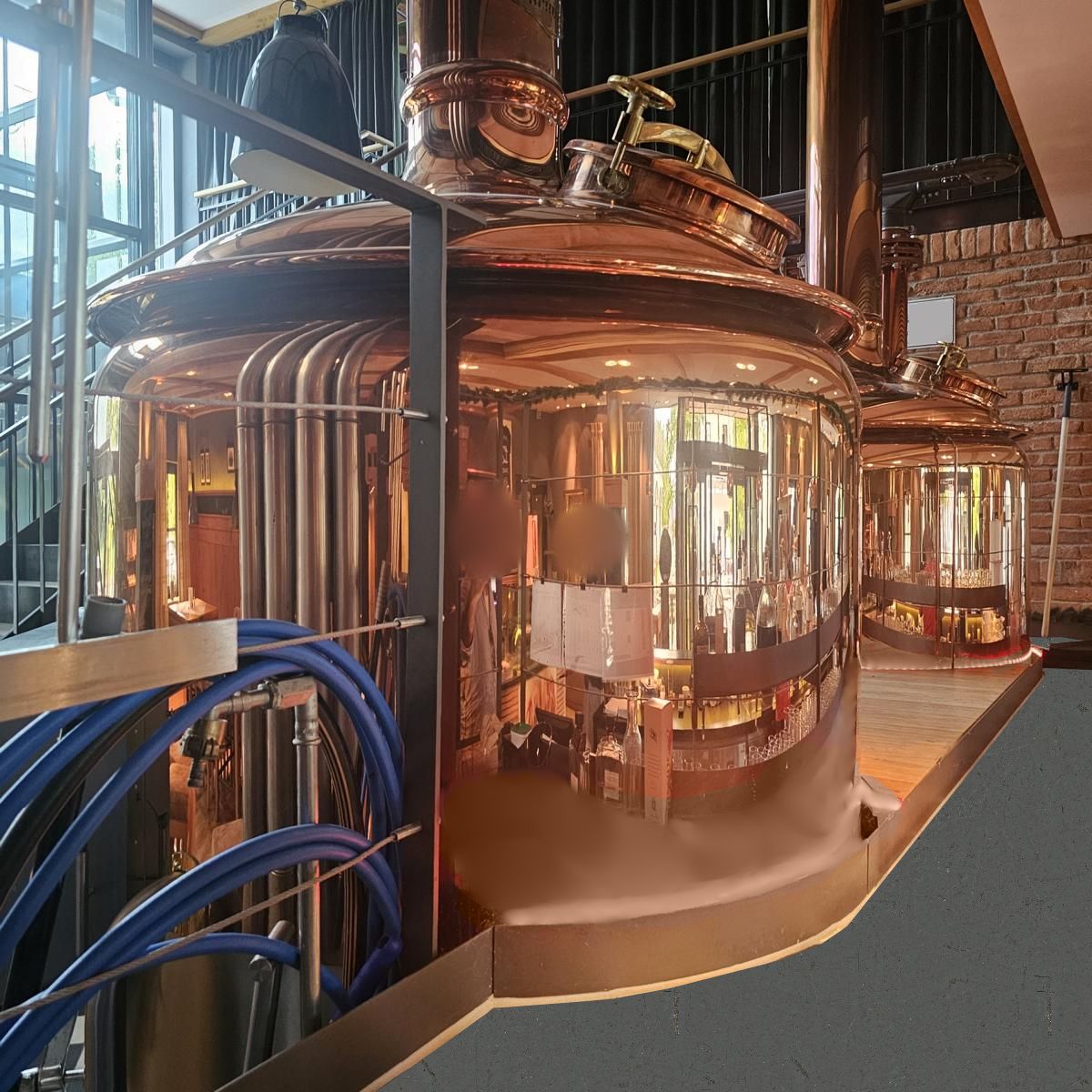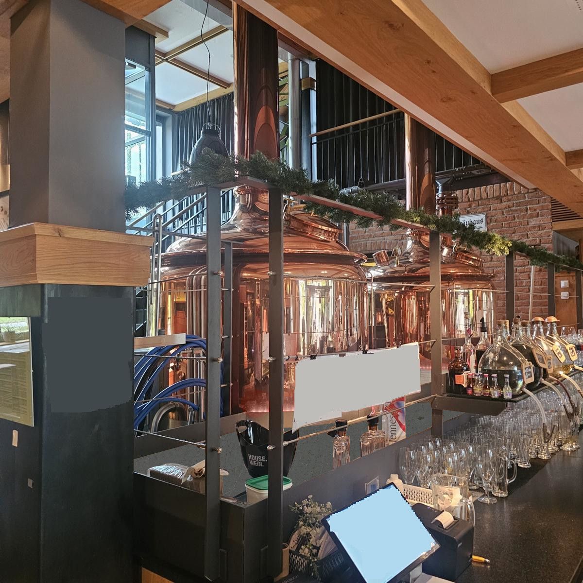Complete production and filling plant for a pub brewery, consisting of the following components: 1. Milling plant Milling mill with malt feed hopper and pipe chain conveyor system for malt grist. 2. Brewhouse 2-unit brewhouse (Kaspar Schulz, built in 2013) as a brewing block with copper-clad stainless steel vessels. The wort is cooled by a separate plate heat exchanger (API Heat Transfer, built in 2013) with downstream wort aeration. There is also a hot water tank (Kaspar Schulz, 2013) with insulation and heating jacket. 3. Fermentation and storage cellar Manufacturer: Diverse Year of Construction: 2013 Condition: Used Stock Number: 210349MW