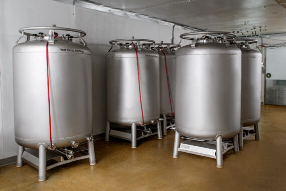 1000L/264gal Stainless steel serving tanks/  Rated for 2Bar pressure /16″ Manway / Triclamp fittings/ forkliftable