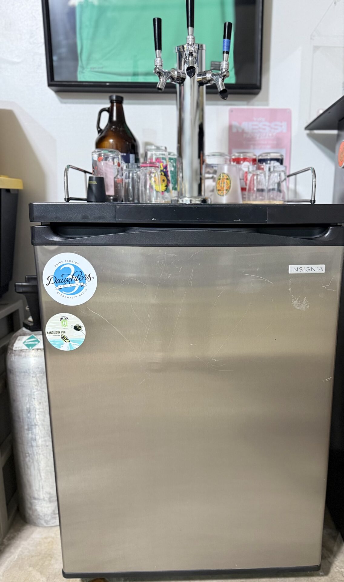 – insignia tap kegerator cooler with adapter for 3 kegs. ( like new, original price 550)