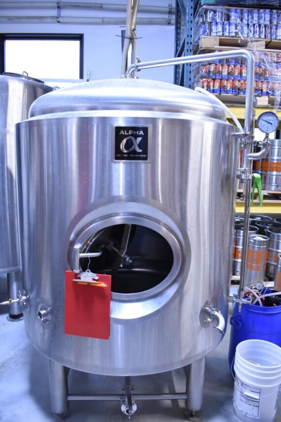 We have a good condition used Alpha Brewing 10BBL Jacketed Dual-Zone Bright Tank – 40 PSIG Working Pressure coming from a recent closure.