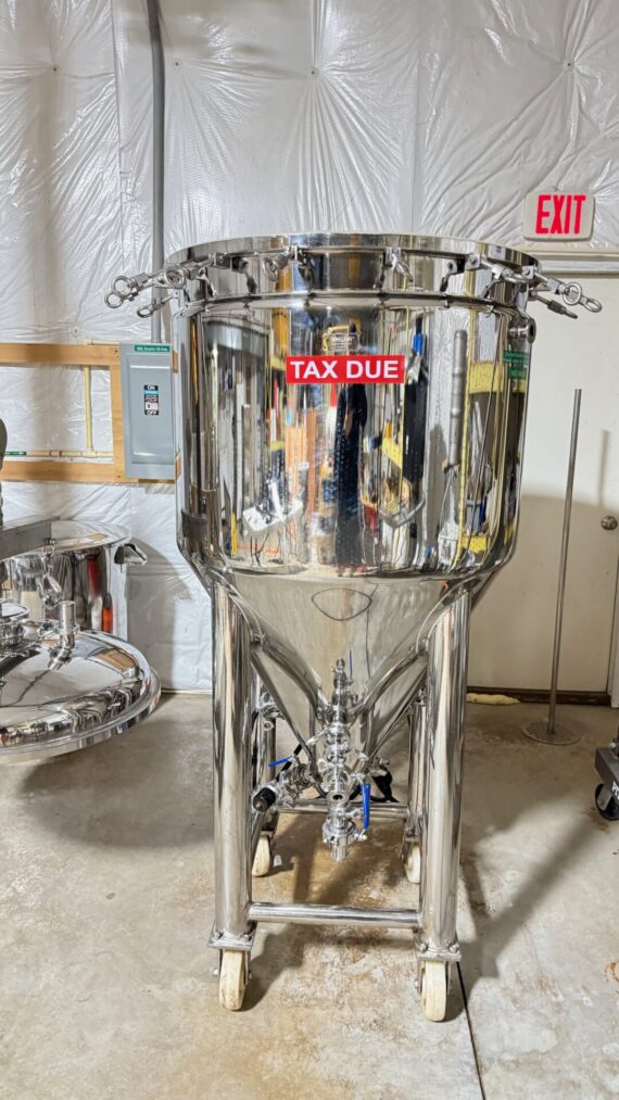 We are selling a BrewHA brewery package that includes the brewhouse/fermenter combo. These are super cool systems that are great for a small footprint location that wants to produce beer. It is in very good condition and includes a motorized hoist to make production smooth. This setup is a 220v Single Phase setup! Here are the specs details from the manufacturer: This 3BBL brewing system now includes a 5-in-1 conical fermenter and can brew up to 51BBL/year (12000pints) on a three week fermentation cycle in the one fermenter that is included with the 3BBL brewhouse systems. With the removable Mash Colander being the ‘brewhouse’, for increased production capacity just add additional 3 BBL stainless conical unitank fermenters (new model BIAC 5-in-1s) and use the one Mash Colander in each additional fermenter on brew day. (See this .gif for how adding multiple fermenters to the one BIAC brewhouse allows one to easily scale up your 3BBL brewhouse brewery production.) 3BBL 3.6hL Brewing System Specifications Max mash grain bill 100kg/220lb Max. pre-boil wort volume 400L/105gal Beer volume 180-360L/1.5-3BBL Gross tank water volume 420L/115USG Stainless conical fermenter dimensions: 162cm/64″ height with lid off; (90cm/35″ outside diameter) Combined height (fermenter and Colander tanks): 251cm/99″ height; 358cm/141″ ceiling recommended (305cm/120″ minimum ceiling over brewhouse) Fermenter tank pressure: 14.9psi in vessel / 7psi in jacket Total kit mass: 475kg/1050lb Electrical draw for brew temperature control: 240V or 208V; 1Φ/100A (2 hots, neutral and ground) or 3Φ/75A (3 hots, neutral and ground); 22kW heaters plus 1hp pump See BIAC brew systems specifications page for more. See this page for our innovative HLT CLT hot dual purpose hot liquor cold liquor tanks. Business thrives with delicious craft beer. Nothing brews delicious craft beer better than the BREWHA® BIAC®. The patented BREWHA complete beer brewing equipment all-in-one kit for home, nano, micro-breweries and brew pubs is a high quality, affordable, flexible, turnkey brewing kit that makes brewing simpler, more enjoyable, and easier to do. The exclusive, patented design is the only brewing kit where the entire process (heat, mash, boil, and ferment) occurs in the portable stainless conical fermenter tanks saving you space, time, and money. And with the boil kettle electric heating occurring in the fermenter, you achieve perfect heat sanitation in the vessel without the use of toxic chemicals, ensuring that you are drinking the freshest, best tasting beer possible. Electric temperature control during brew fermentation is easily achieved with either the stainless electric immersion water heaters for heating, or by using the water jacket surrounding the tank through which cooling water can be ran for chilling; our electric brewery water chillers make this easy to set up and easy to operate. The recipes and experience learned with smaller sized fermenter tanks can be easily translated to the larger sized tanks making scaling up smooth and easy. The BREWHA Microbrewery brew systems includes a wedge wire false bottom in the Mash Colander kit for high mash efficiency and a 14.9psi pressure rating on the fermenter unitank which means the stainless fermenters can be used as brite and serving tanks. Once fermentation is complete, the yeast can be removed out the bottom of the tank and the fermenters connected to one of our chiller dispensers for serving the beer, or beer transferred into kegs.