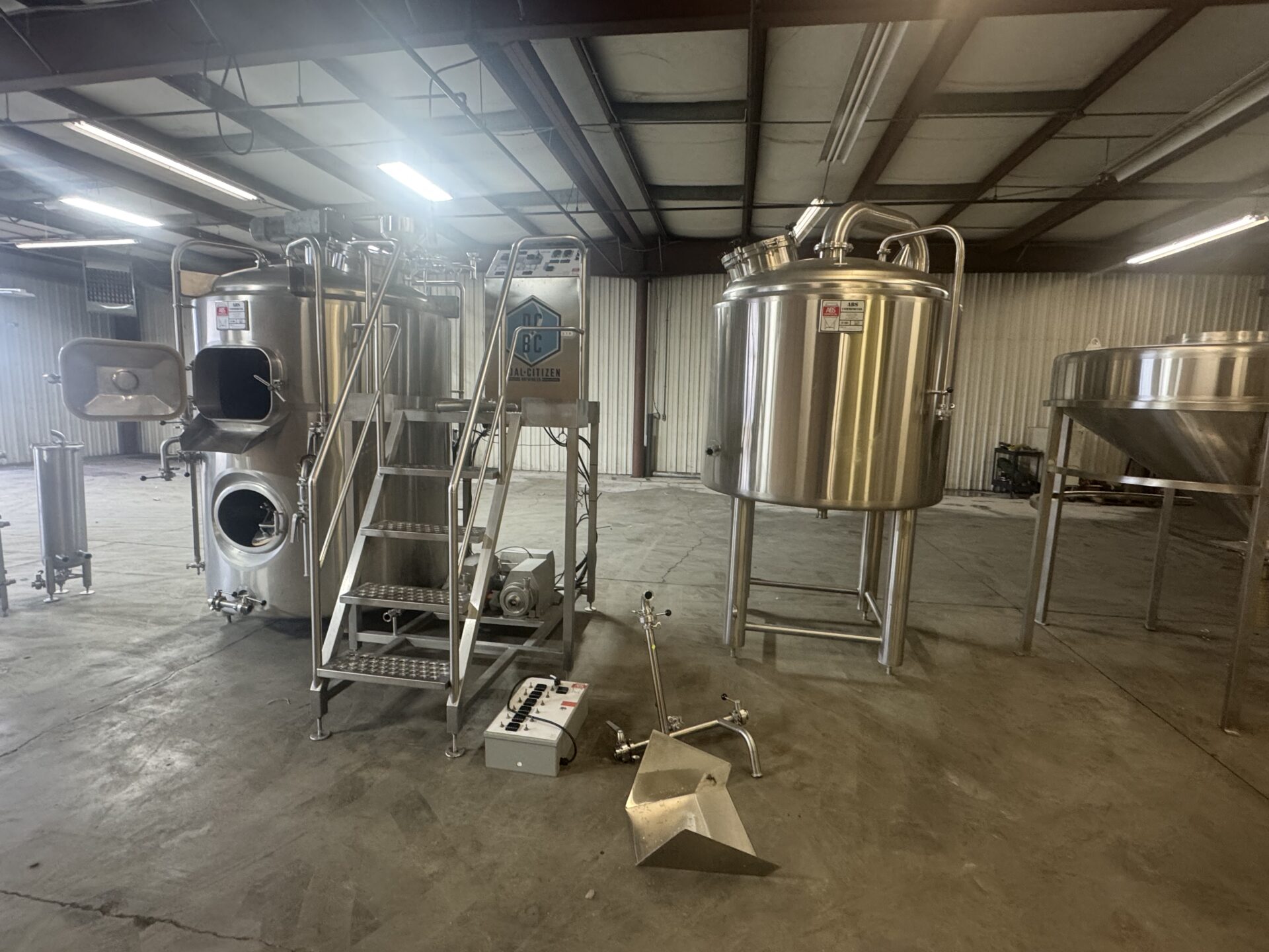 10 BBL (11.7 HL) ABS Steam Brewhouse, 3-Vessel Combi System. Used, in good working condition.