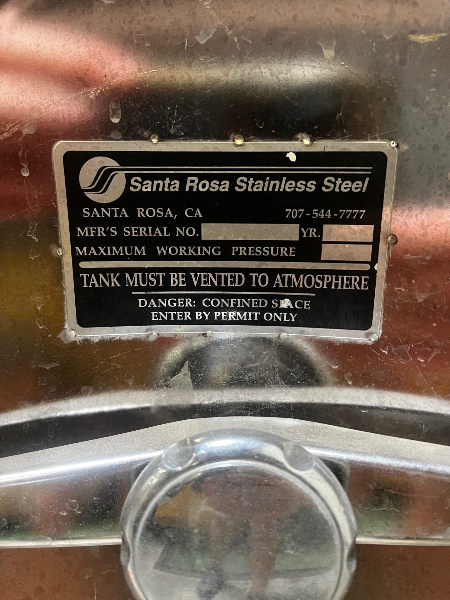 The Taransaud Tonnellerie Santa Rosa 60 Bbl Tank is a premium vessel designed for efficient fermentation and storage in winemaking. Constructed with high-quality materials, it ensures durability and optimal temperature control for preserving wine integrity. With a 60-bbl capacity, it offers a large-scale solution for wineries, supporting both fermentation and aging processes. This tank is ideal for winemakers seeking precision, reliability, and excellent performance in their production operations.Capacity: 60 BBL (2,500 gallons) Discharge diameter: 2.5 inches Butterfly discharge valve Discharge height from ground: 6 inches Manway door: 16 inches tall x 12 inches wide