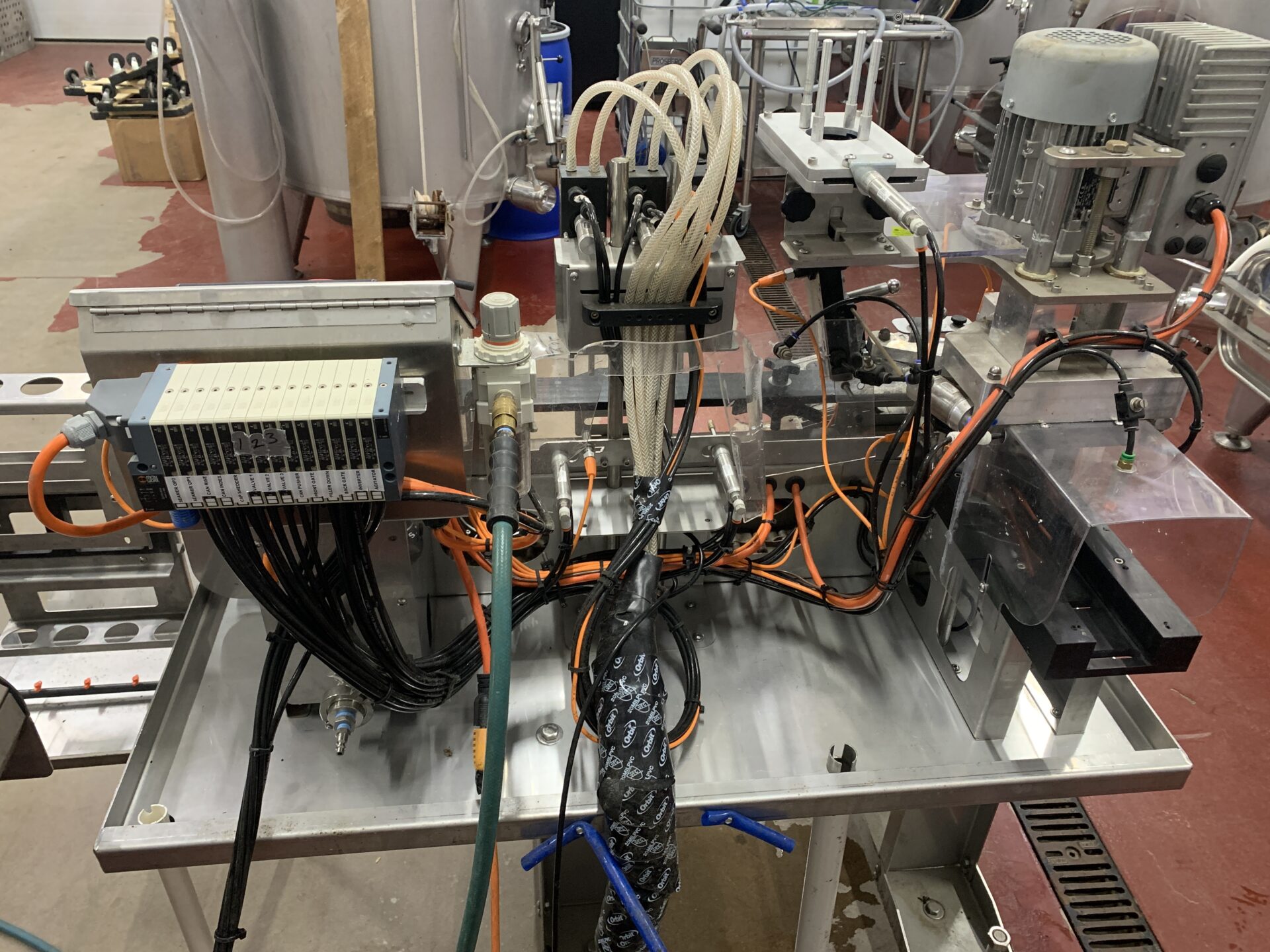 MC-Flex 3-Head Can Filler & Single Head Seamer with accumulation Infeed table. Up to 30 cans per minute Infeed rinse CO2 can purge Under cap CO2 Automatic filling Automatic purge Automatic lid application Automatic seaming Cans supported: LOE 202 8,12,16,19oz Washdown rated 3 Filler heads Rinse tunnel infeed