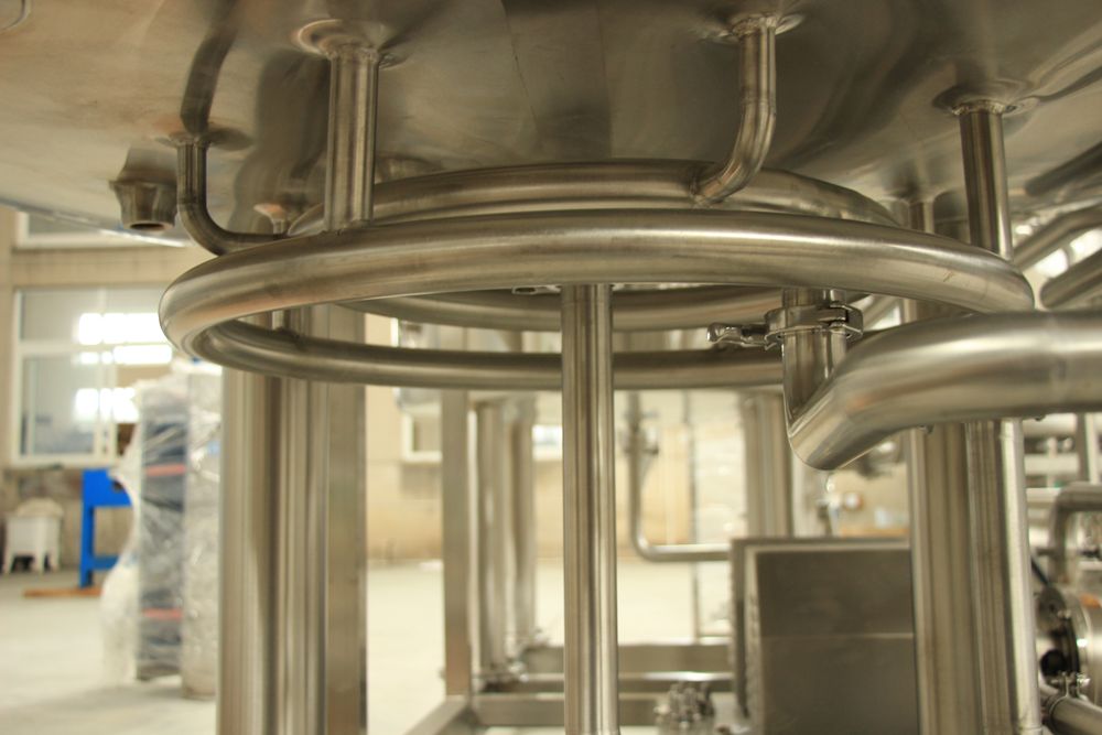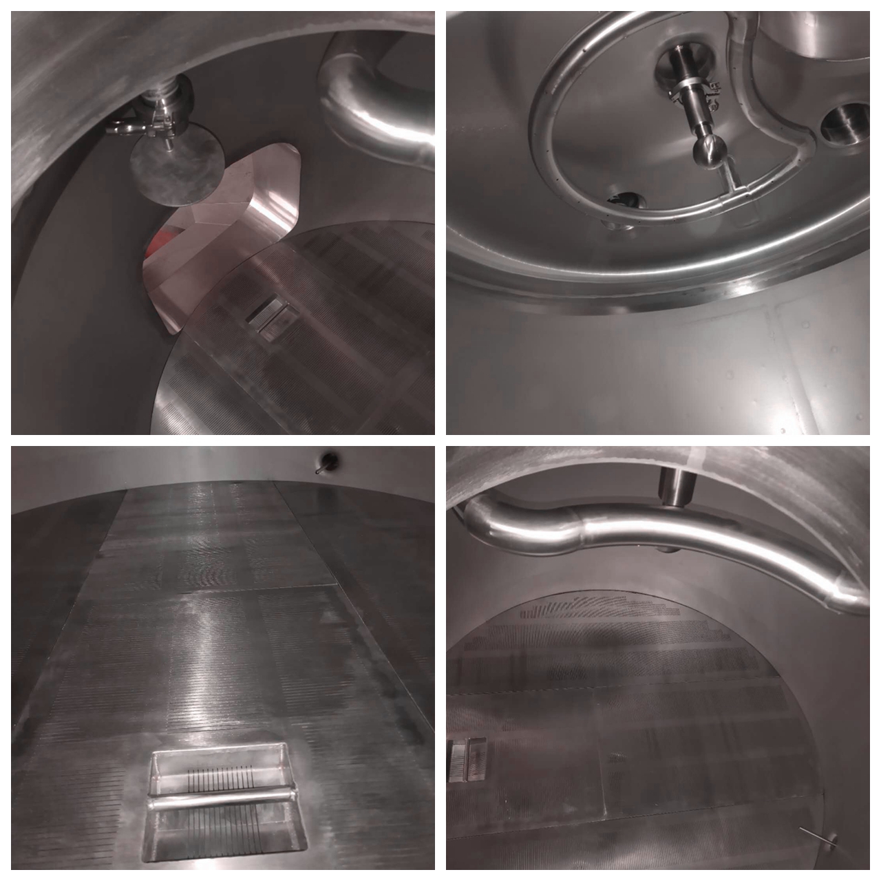 CIP spray balls (top) + spray nozzles under false bottom