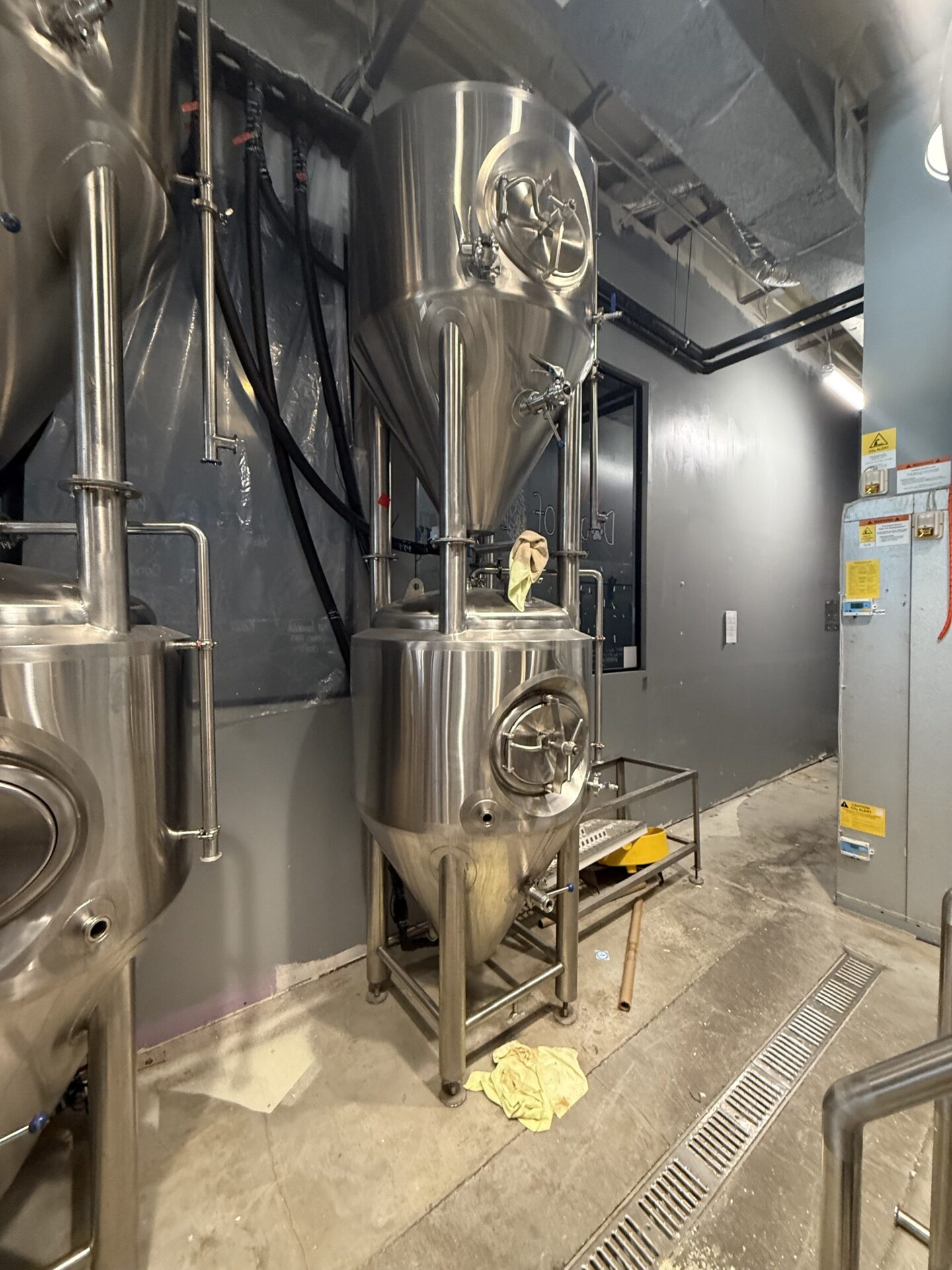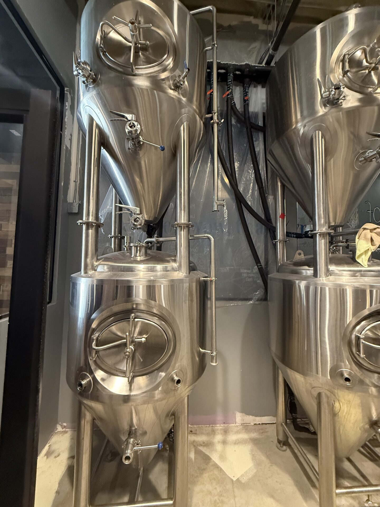 • (4) Conical Fermentation Tanks, stackable stainless steel