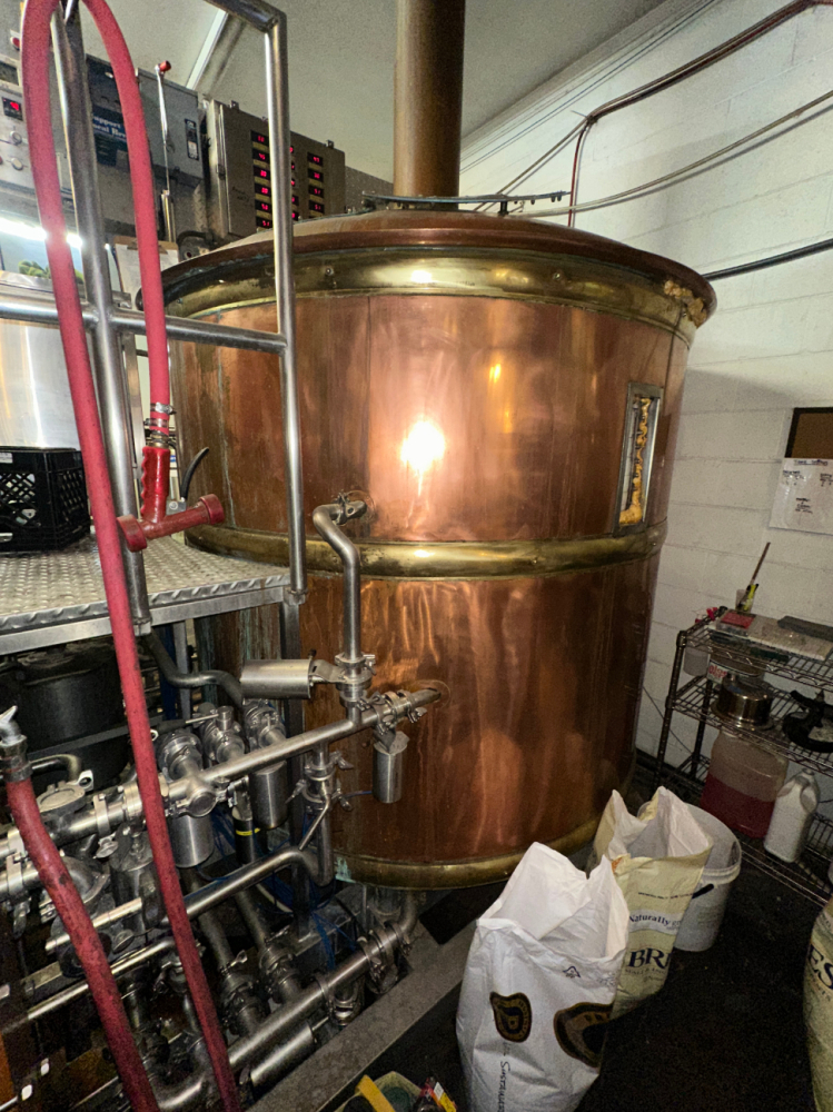 15 BBL Bohemian Brewhouse —- Steam Fired Skid Mounted Air actuated valves from Control panel High quality built with a few appearance imperfections and repairs needed on the copper but doesn’t affect functionality.