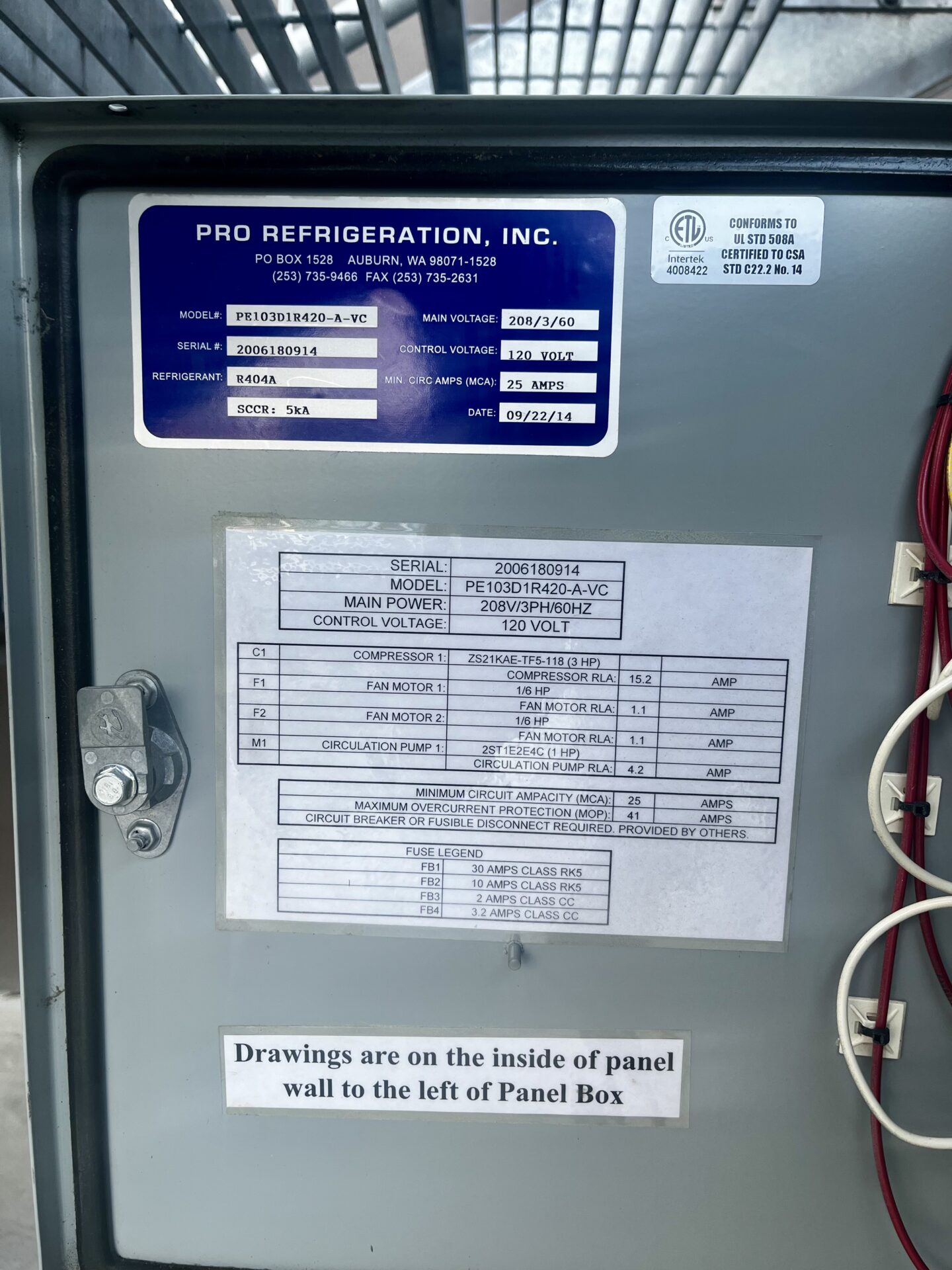 3 hp ProRefrigeration ChilStar glycol chiller, well maintained, with the pump recently replaced. We used this at our barrelhouse to cool a 40 bbl and 30 bbl fermenter, and a 20 bbl and 10 bbl brite tank. We closed this location and this chiller is surplus now.