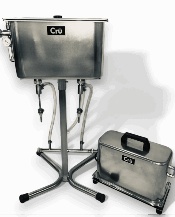 2-Nozzle Semi-Automatic Stainless Steel, Bench-Top Bottle Filler. Bottler is designed specifically for smaller bottles and comes with Vacuum Pump. Power Requirements: 110v/60hz. Also comes in Pneumatic Version.