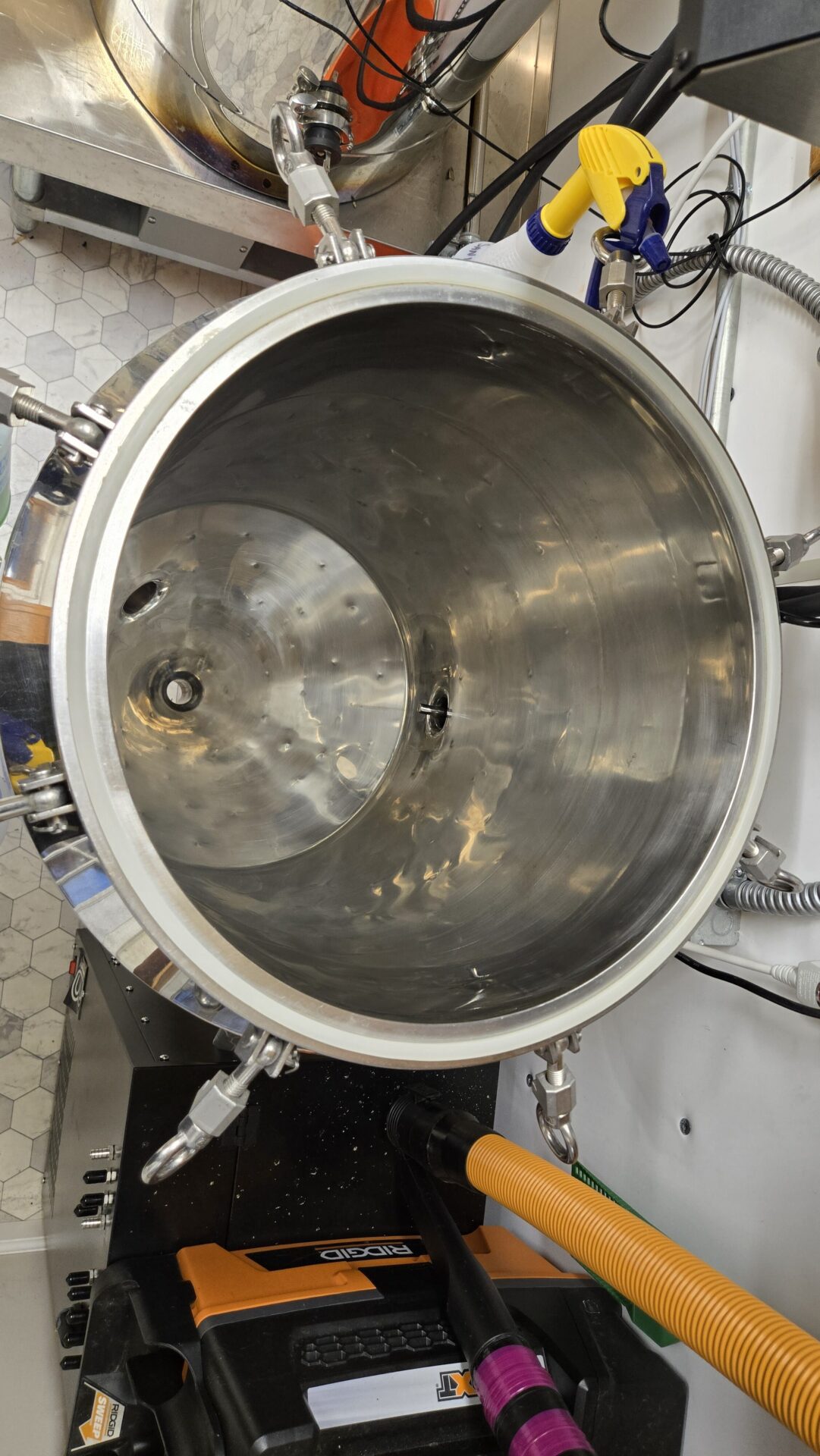 Point and Click pneumatic valve control, pump speed control, and fermentation temp control is all accessed via the human machine interface panel. This is done on a 32′ curved computer monitor, see pictures. A supply of 90 PSI air from an air compressor is required for valve control. NOT Included. You can get a small air compressor from Home depot for <$300 that will provide the air required to operate all the valves.