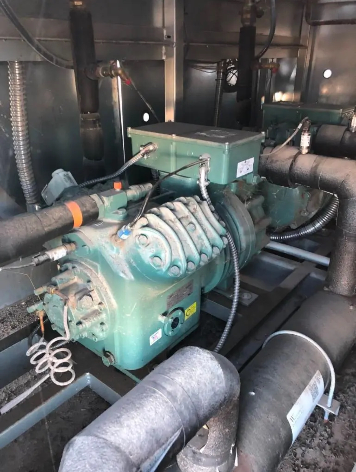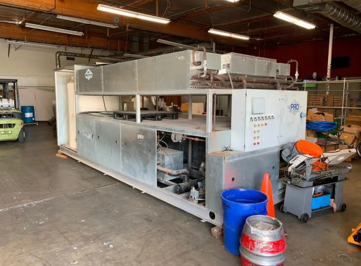 Used 60 HP glycol chiller for sale from a working brewery in Orlando, Florida. This industrial brewery glycol chiller was in operation at time of shutdown and is rated for 460V / 3-phase power with 120V control voltage. Ideal for large breweries, beverage producers, or industrial cooling applications looking to avoid the high cost of a new glycol chiller. Comparable new replacement cost exceeds $150,000+. Unit is currently located in Orlando, FL. Professional rigging, loading, and nationwide freight can be arranged.