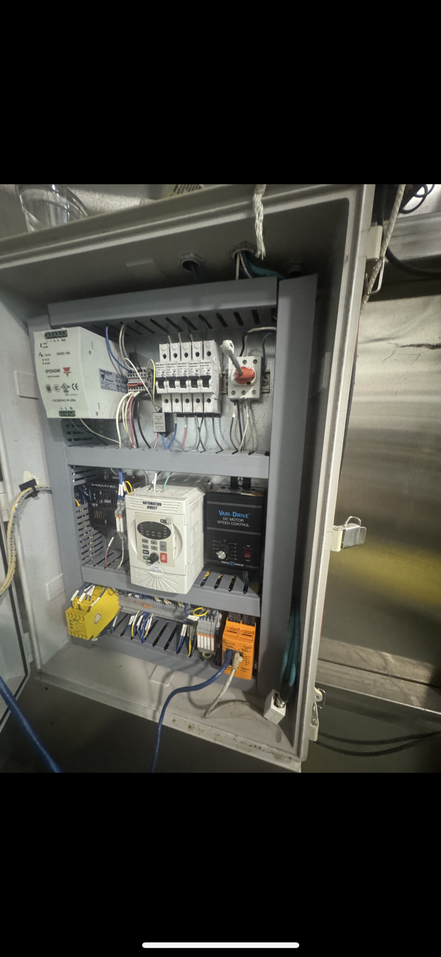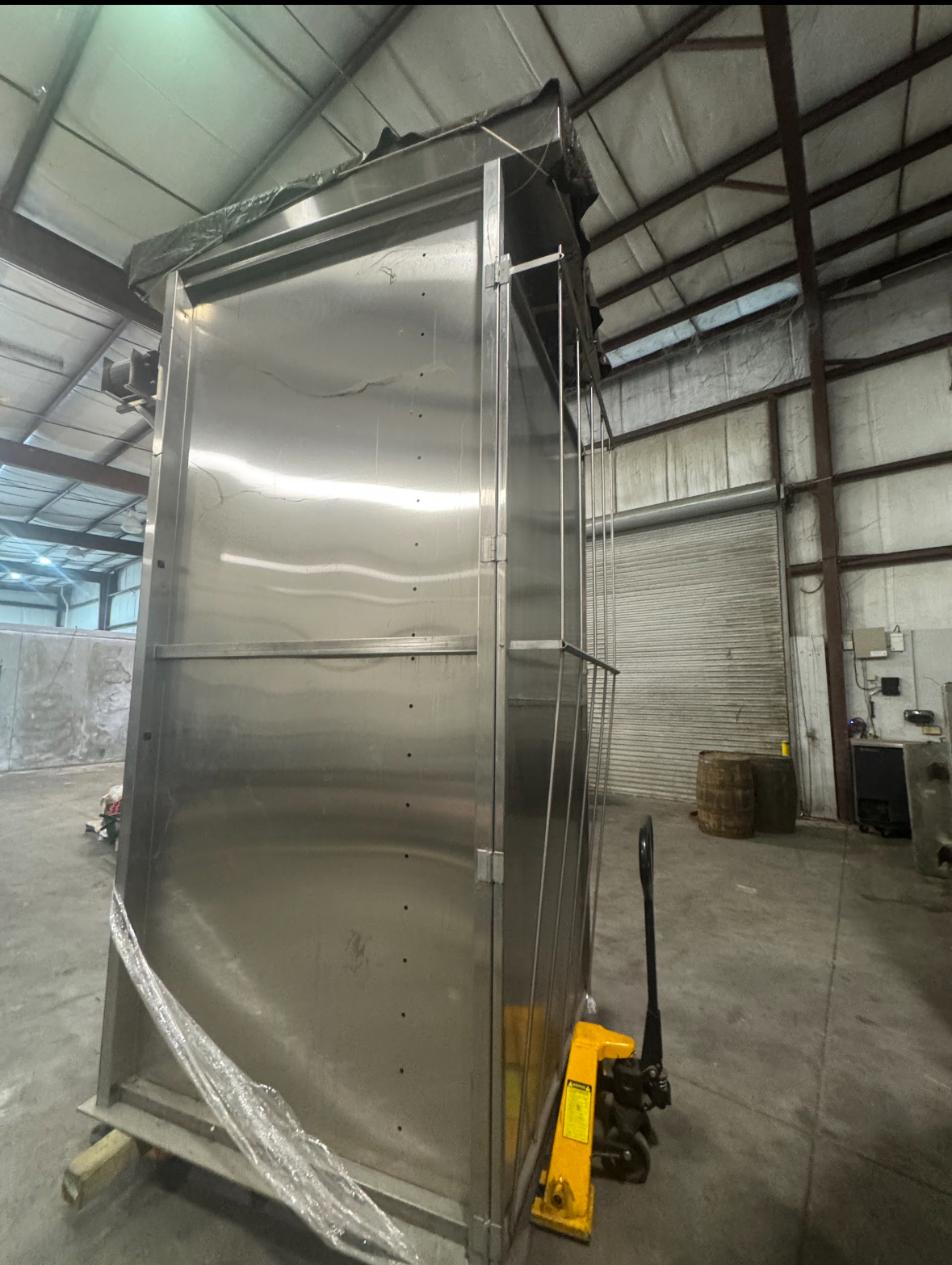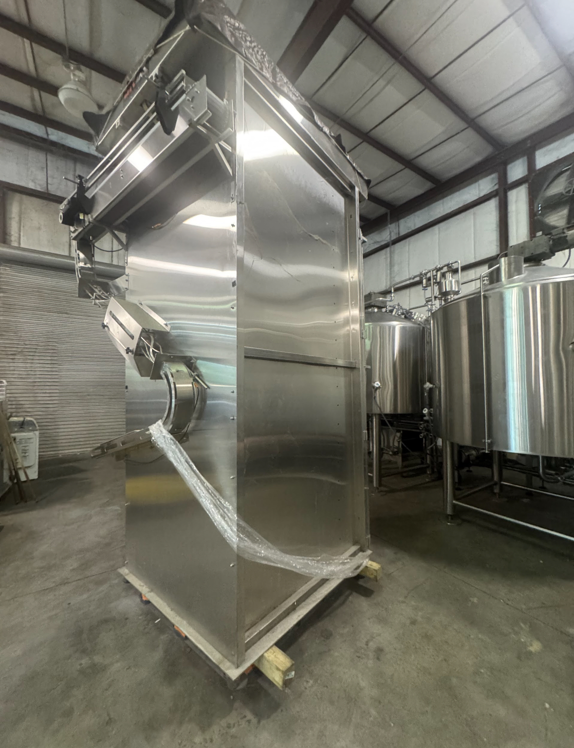 We have this Automatic full-height GRX Manufacturing Depalletizer designed for unloading full pallets of empty cans. Stainless steel construction with an integrated control panel, automatic lift, and sweep arm for smooth operation.