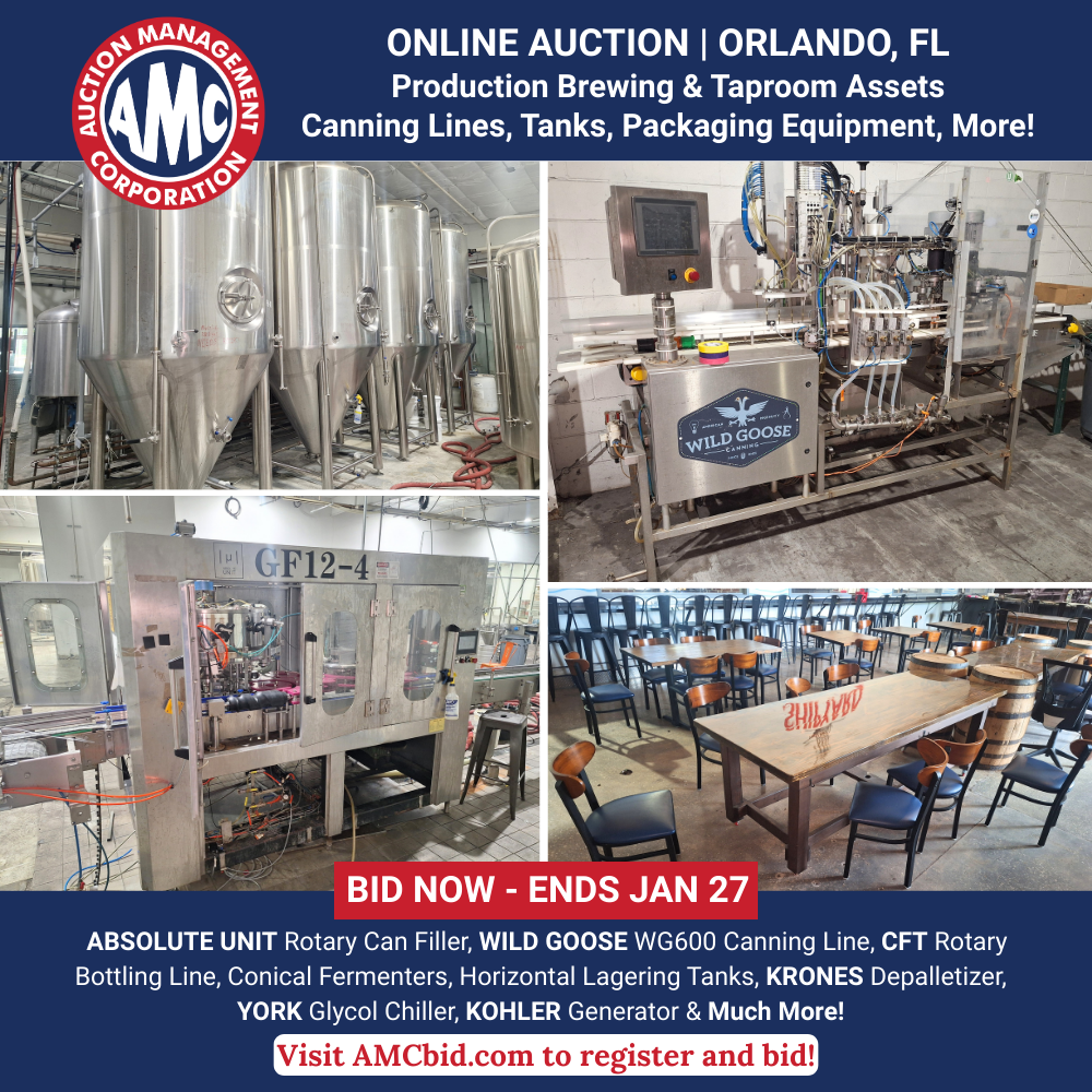 **Online Auction of Surplus Production Brewing Equipment and Taproon Assets in Orlando, FL**