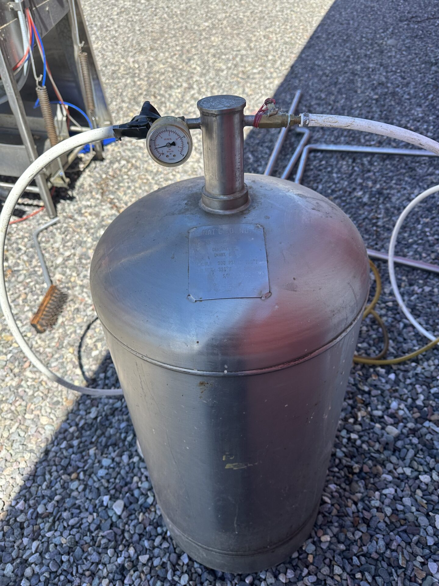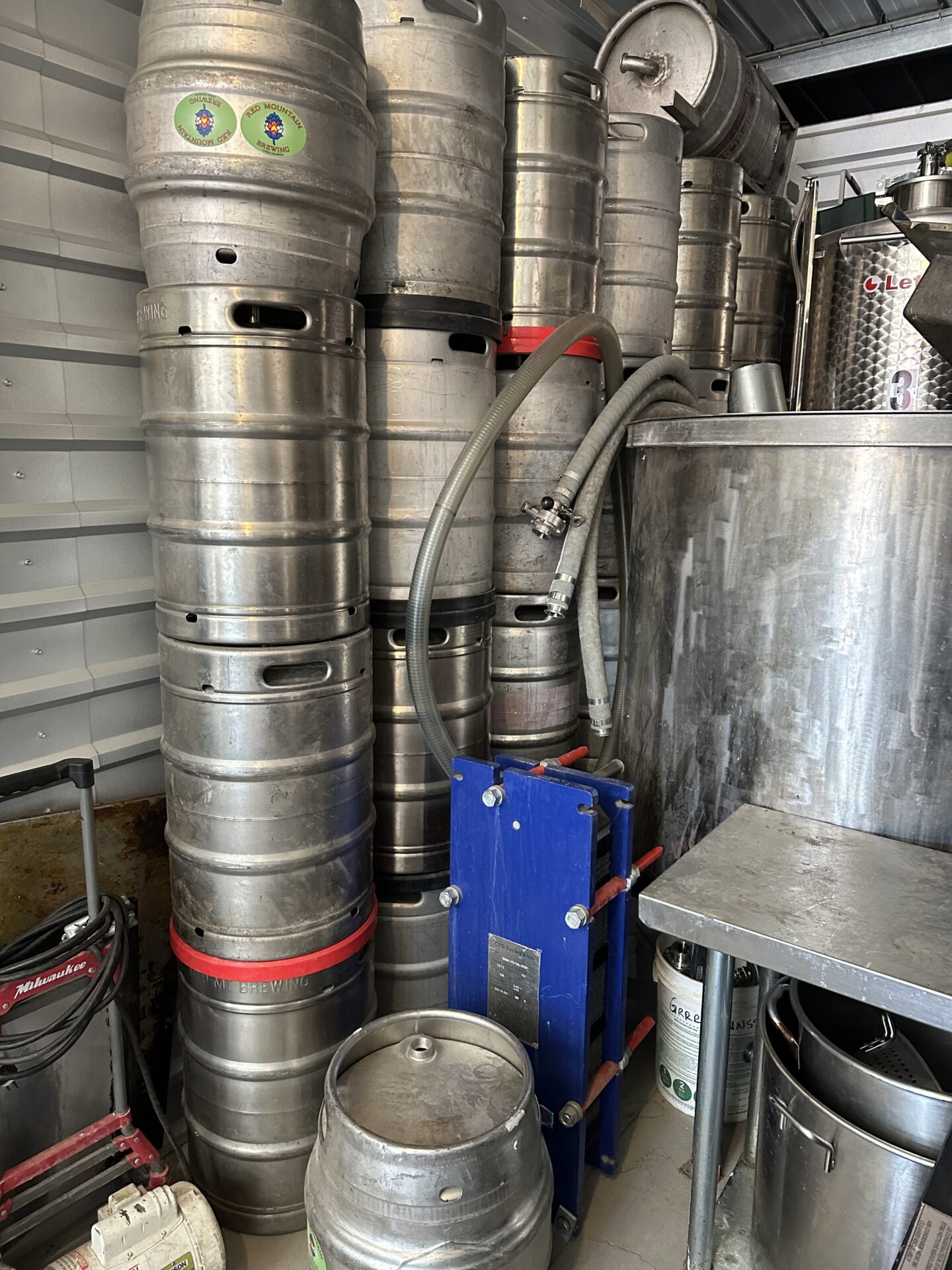 7 Barrel Kettle, 7 barrel mash tank, 7 barrel hot water reserve tank, 6 brite tanks, 4 letina fermenters, kegs, pump, CO2 tank, oxygen tank, c-clamps, hoses, 2 glycol machine, ferkin keg miscellaneous brewing equipment.