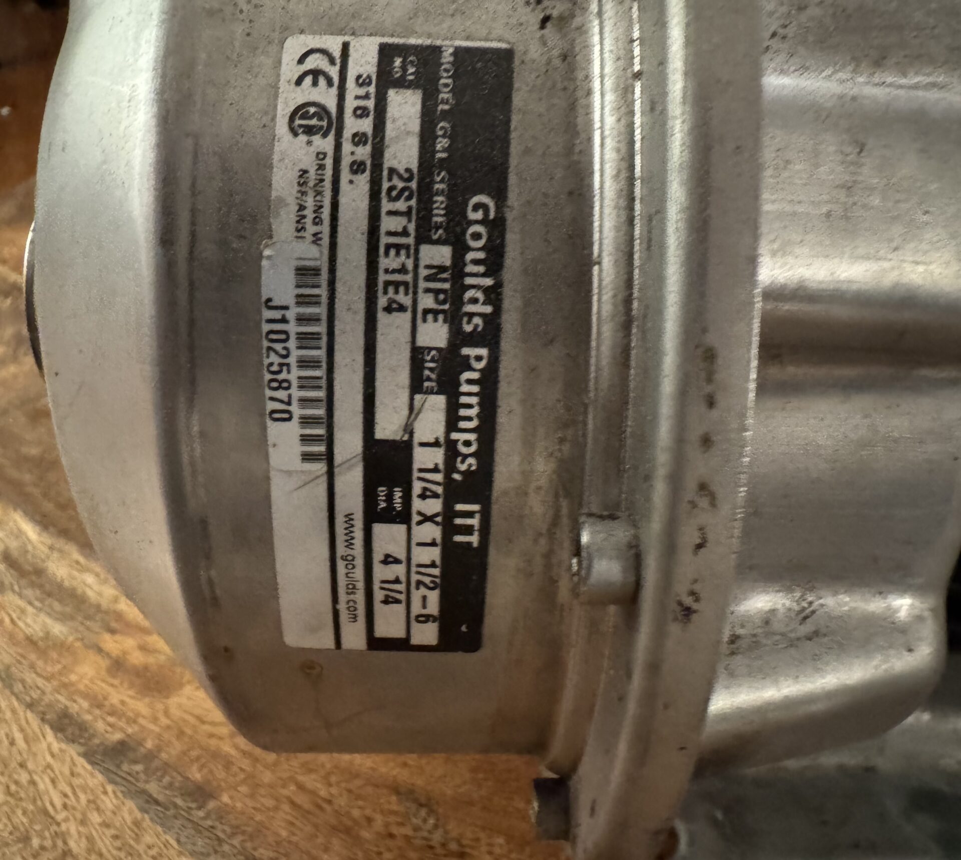 Goulds NPE series stainless centrifugal pump available from a recently closed brewery. This unit was used as a glycol circulation pump and has been fully rebuilt, making it ready for immediate use.