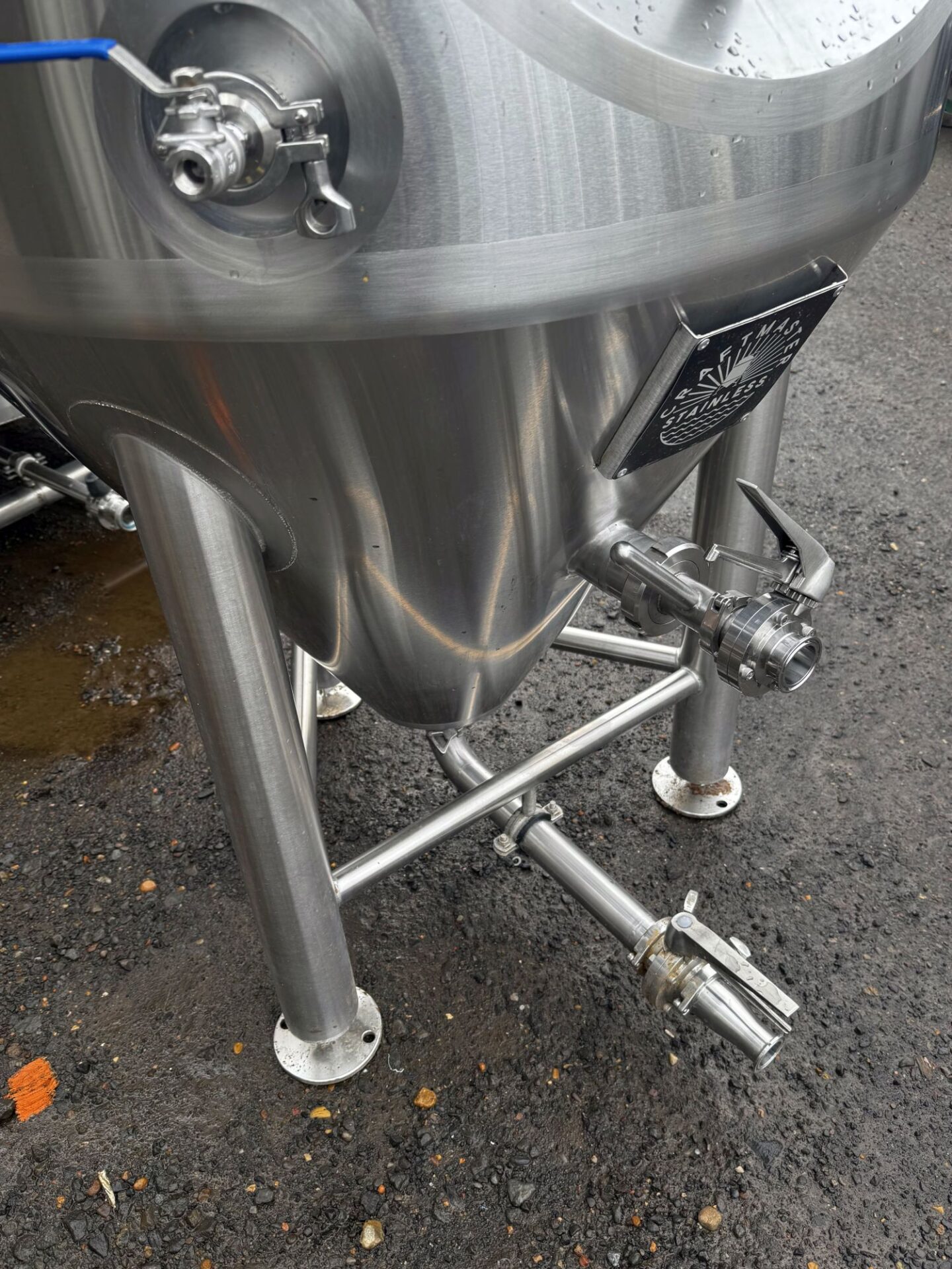 (3) available – These are used Craftmaster Stainless 3.5 bbl / 139 gallon gross capacity conical unitank jacketed fermenters. They are designed with side manway door, cip, prv, sample valve, carbstone, pressure gauge, racking arm, and miscellaneous valves. They have cooling jackets on the cone and sidewall. These were last used in a brewery and are represented in excellent shape. (3) available – price per tank.
