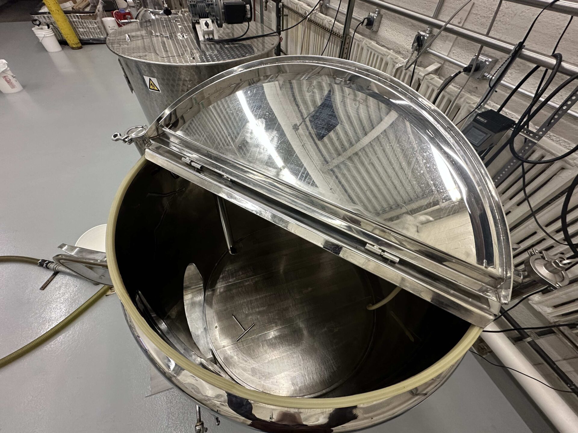 170-gallon capacity Stout Tanks mash lauter tun and accessories in excellent condition. Insulated on sides, with wedge wire false bottom. Comes with (3) upper recirculation fittings to help prevent stuck mashes, and the machined wedge wire false bottom for high efficiency and easy grain removal. Last used in February and has not been moved since.