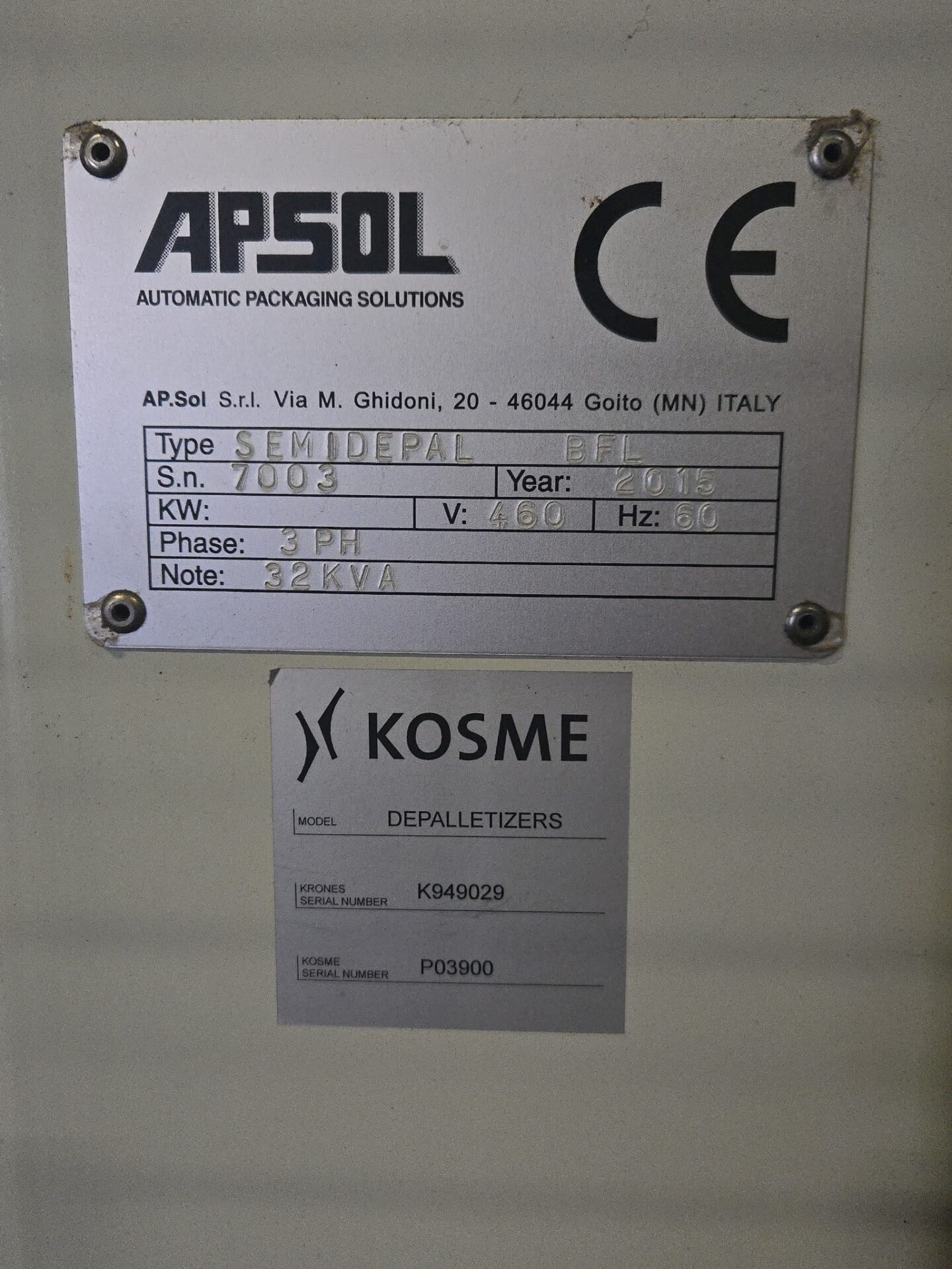 2015 KOSME Semidepal BSL Depalletizer