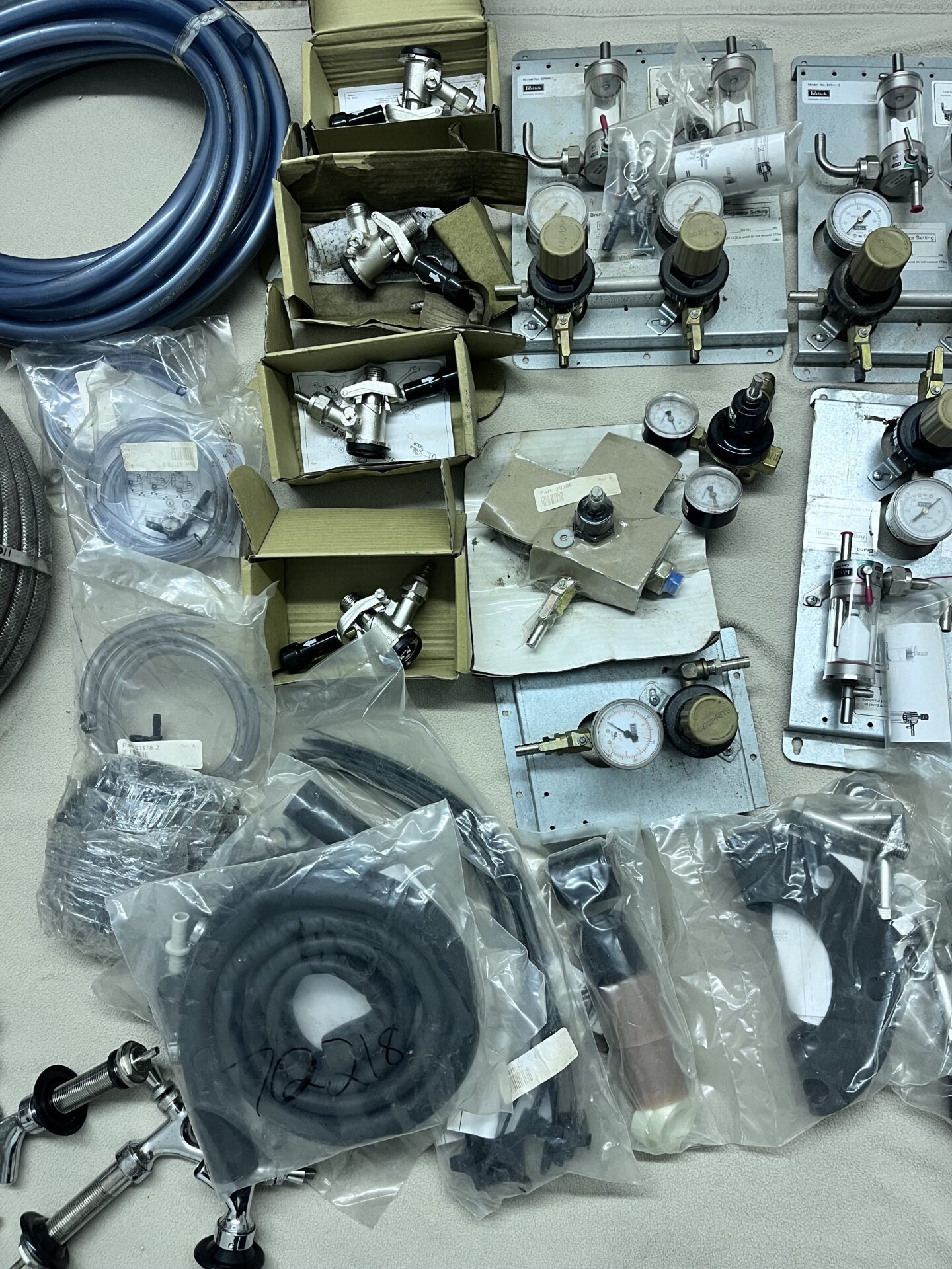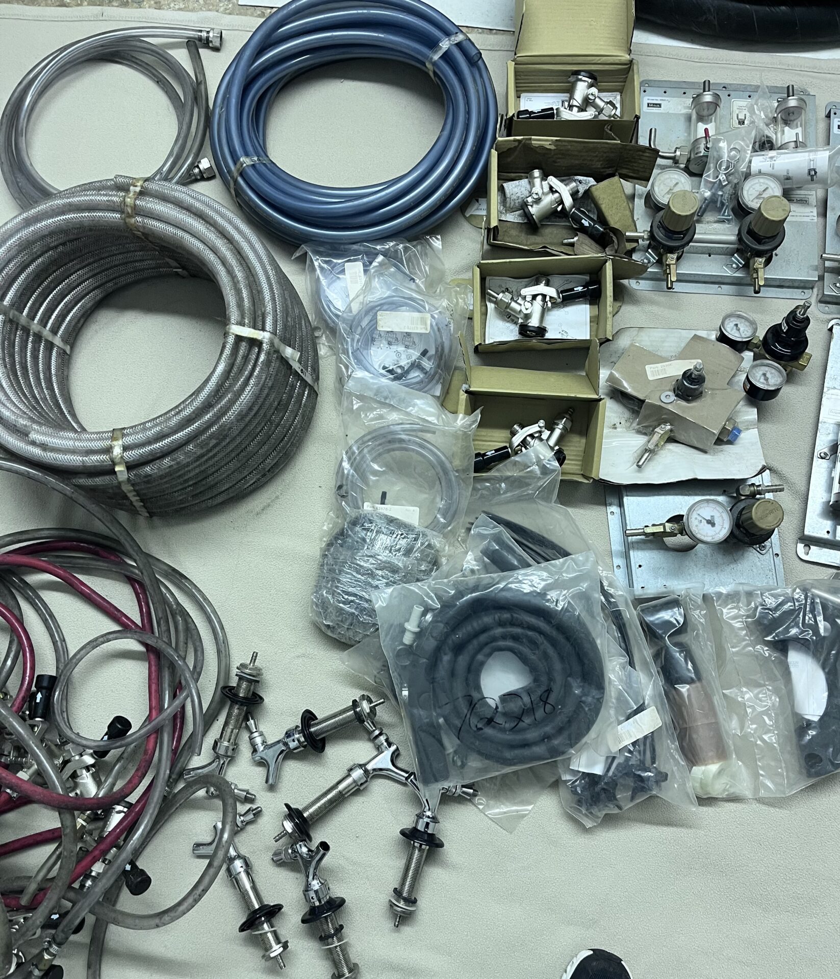 Never used trunk line and Perlick regulators. There are five panel mounted manifolds with regulator. Tons of fittings are included. I do not have the glycol pump but will include several bottles of glycol.