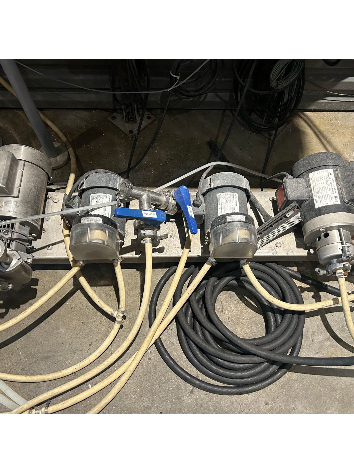 – 2x 1/4p peristaltic pumps, 1x 1hp centrifugal pump, and 1x 1/2hp centrifugal pump