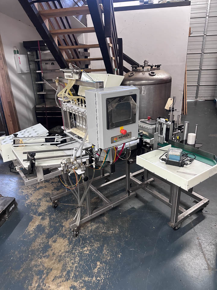 Meheen 6-head counter-pressure bottling system configured for 12oz Heritage glass bottles. Originally purchased for cold brew production and used for approximately 10–15 production runs. System is in very good condition with extremely light use. System includes Meheen 6-head counter-pressure bottle filler Integrated bottle rinser / rinsing station, Bottle staging plates, Capper, Bottle labeler, Label printer Currently configured for 12oz Heritage bottles.