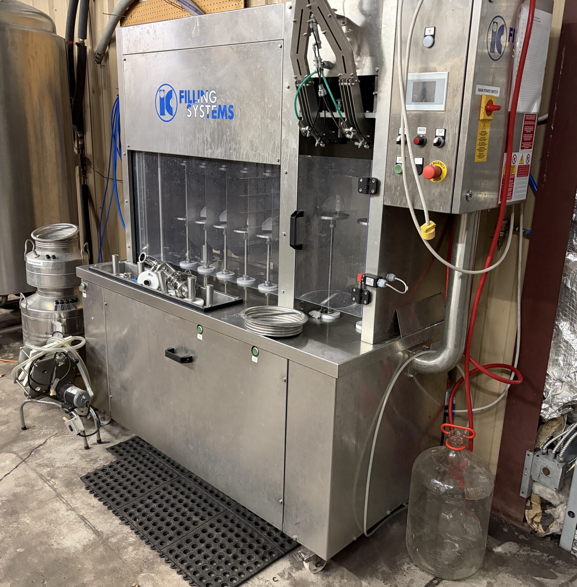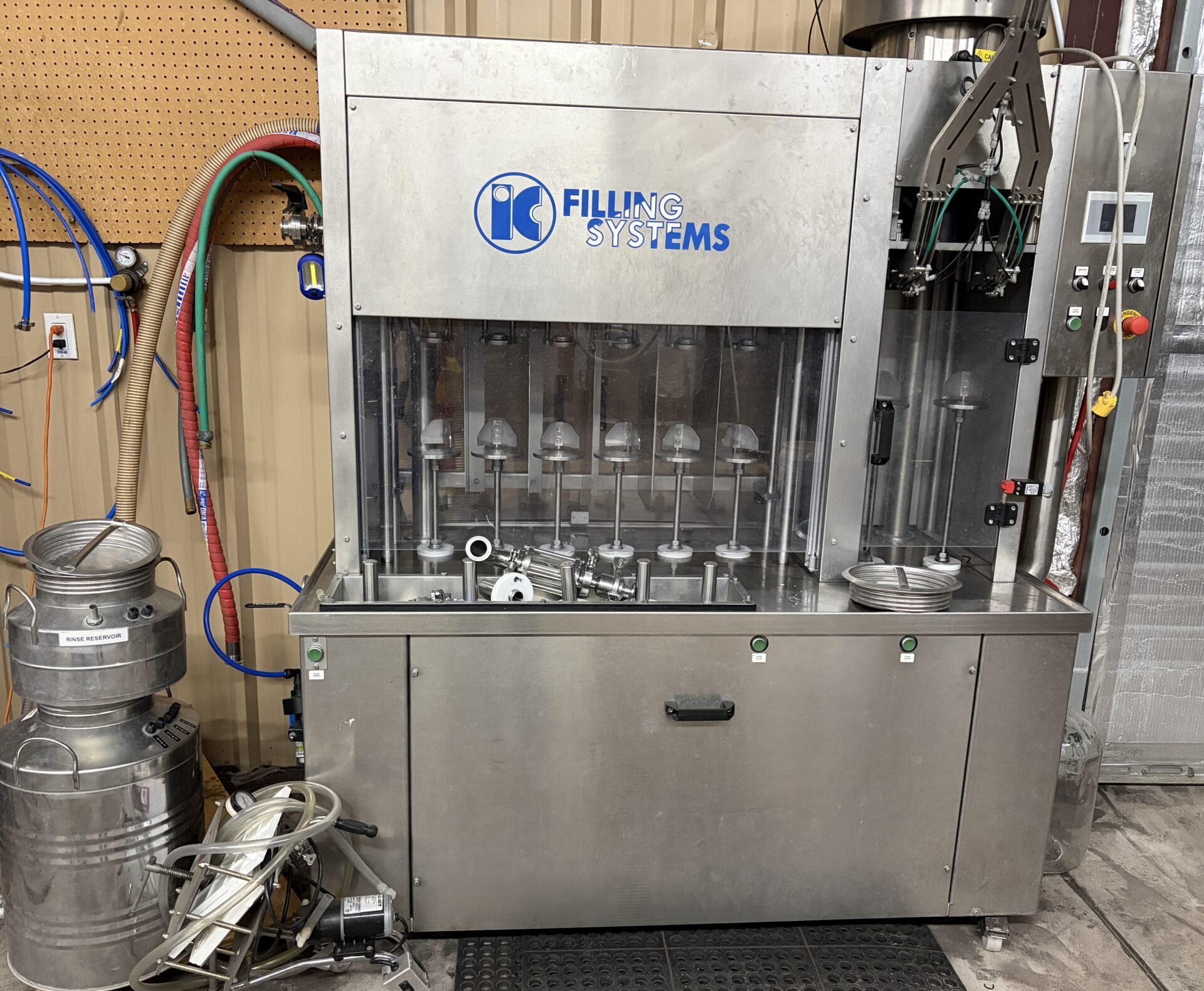 Manufacturer: IC Filling Systems Model: Compactblock 6.6.2 ISO Manufactured: 2018 Power Supply: 110V 60Hz Single This machine was used from 2019 to 2025 to fill standard 12 oz bottles with hard cider. It has less than 88,0000 bottles filled. The ISO-662-Crown counter pressure bottle filler features a six bottle rinse, six filler heads, and a twin crown capper. It is currently programed to fill 12oz standard bottles with carbonated hard cider at production rate around 300 bottles per hour. This used Compactblock Filling System includes CIP washing equipment and a detailed operating procedure manuals. Included with the machine are as follows: A pneumatic Capitanio transfer pump, for CIP and product pumping CIP wash tank, approximately 12 gallon capacity CIP rinse tank CIP hoses and Product hoses Glass vacuum pump jugs Replacement machine gaskets and o-rings Detailed operating procedures manual with components diagrams and electrical diagrams The IC Filling Systems Compactblock 662 is a semi-automatic, three-stage bottling machine (rinser, isobaric filler, and capper) designed for packaging carbonated beverages into glass or PET bottles, typically sealed with crown caps. Key Features and Specifications Functionality: The machine performs rinsing, counter-pressure (isobaric) filling, and capping/crowning all within a single compact frame mounted on wheels for easy mobility. Products Handled: It is designed for oxygen-sensitive, carbonated products such as beer, cider, sparkling wine, water, kombucha, and soft drinks. Bottle Compatibility: The system works with both glass and PET bottles, accommodating dimensions up to 370mm high and 150mm in diameter. Output: The typical output is up to 500 bottles per hour, depending on the bottle format and filling temperature. Filling Technology: It uses an isobaric (counter-pressure) filling method, which is crucial for maintaining carbonation and reducing dissolved oxygen levels in the final product. The process includes pre-evacuation of air and CO2 injection into the bottle neck before capping. Capping: It features a twin-head capping turret with an automatic cap sorter, typically for crown caps, though other capping types (ROPP, screw caps, etc.) can be fitted on request. Cleaning: The unit includes a Clean-in-Place (CIP) system with sprayballs for high-pressure cleaning of internal parts that contact the product. Note: Shipping is not included in the price.
