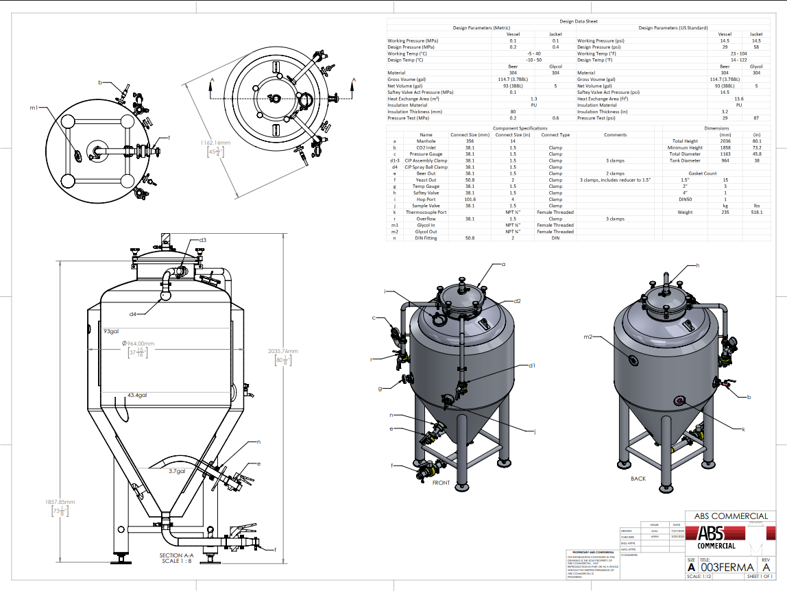 ABS 3bbl top manway glycol jacketed and insulated fermenter unitanks