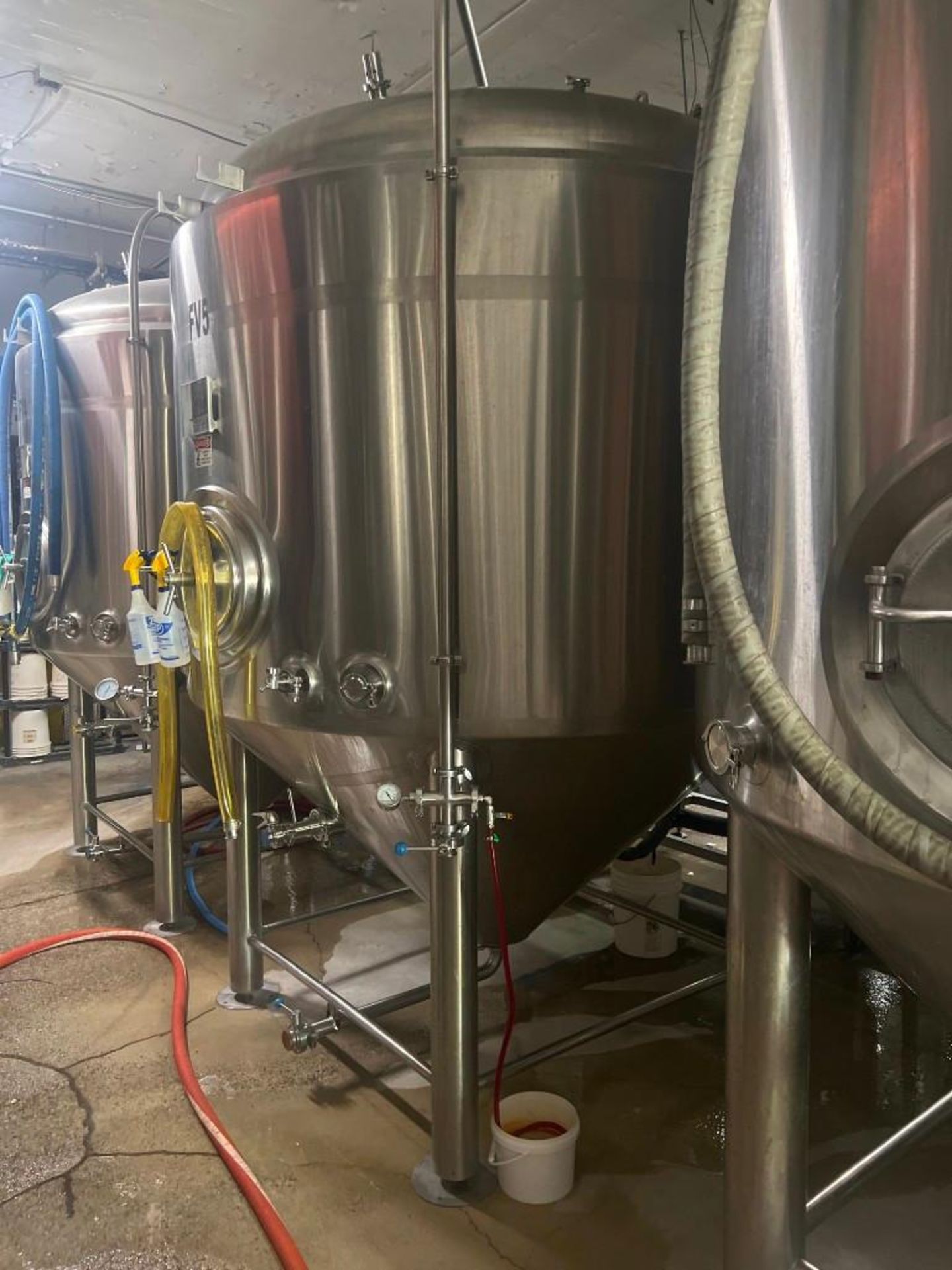40bbl fermenter from Pacific Brewing Systems out of Pamona California! Great condition and well cared for. One available – $6,000 We can also handle all rigging, palletizing, shipping, and installation for an additional fee through: www.tailoredbeverage.com www.breweryglycol.com – Functional Size: 40 BBL – Tank dimensions: Overall height: 136″ Diameter: 96 inches (Perfect if you have lower ceilings!!!) Glycol Jacketed Manway: 16 inches Hop port diameter: 4 inches Standard design pressure: 15 psi 60° cone bottom Thermowell port Pressure gauge Sampling valve CIP arm and sprayball Jacketed and insulated 304 stainless steel construction