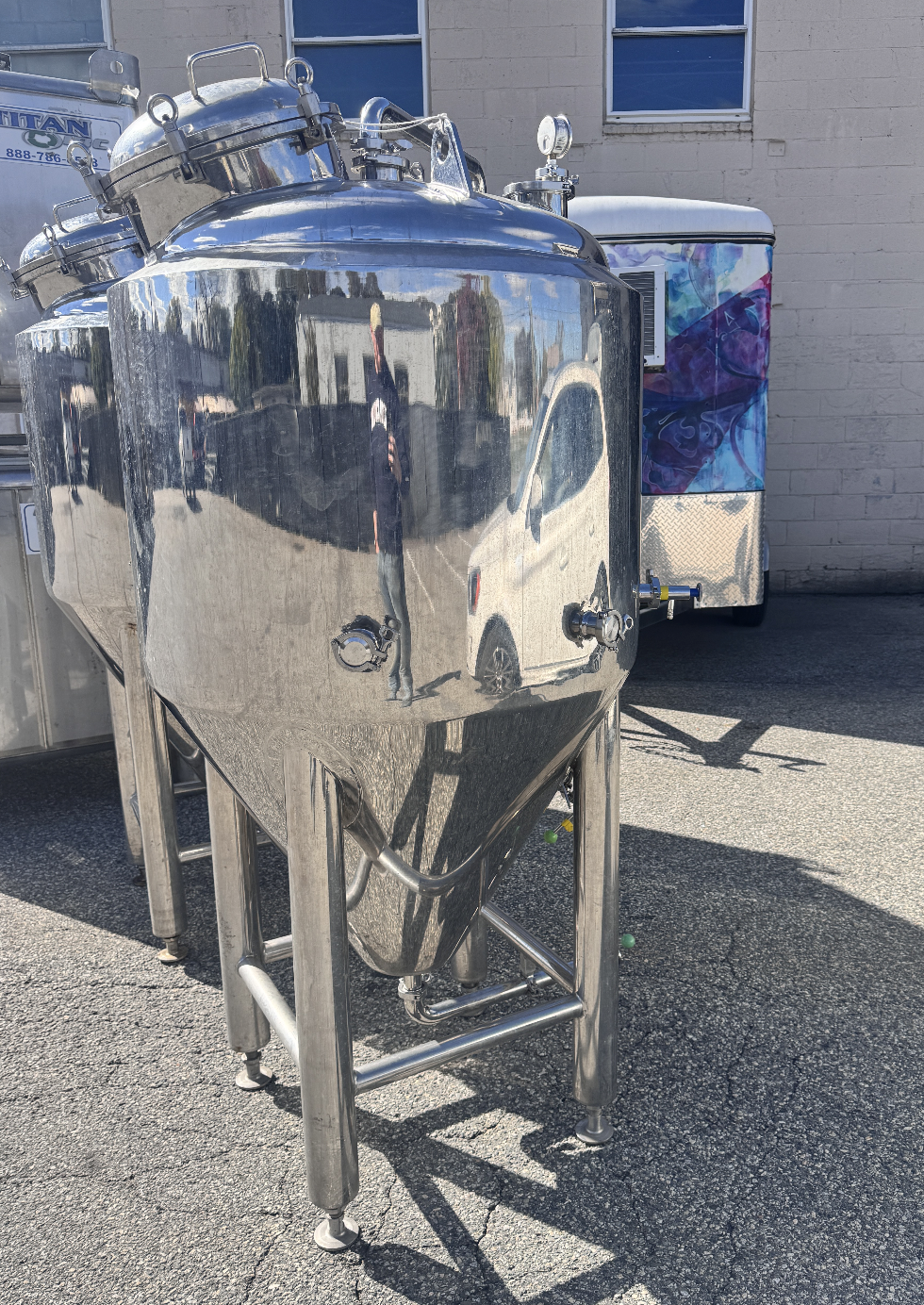 Listing is for four used 3bbl Stainless Steel Glycol Jacketed Fermenters. (if you’d like to purchase individually, please send a note and we can break up the listing quantity) We are vacating our brewery warehouse and no longer need these tanks. They have previously been used to house small batch beer projects, and are in great working condition, clean, and ready for pick-up / buyer coordinated shipping. Warehouse is located in Woburn, MA with local pick-up available. Alternatively, buyer can coordinate shipping. Don’t hesitate to reach out with questions.