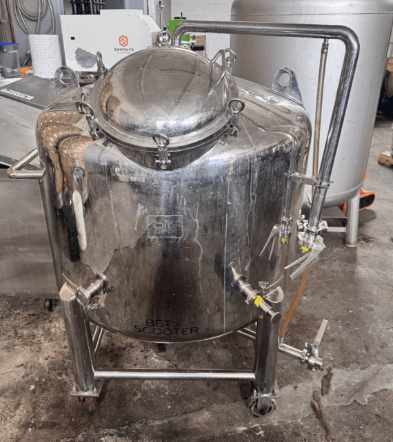 Listing is for a used 3bbl Stainless Steel Unjacketed Rolling Brite Tank.